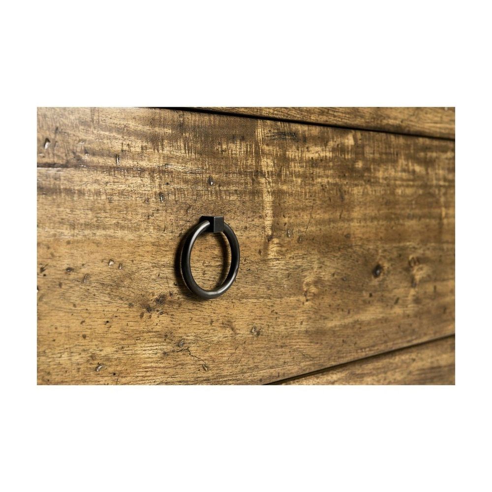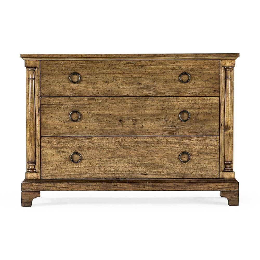 Antique dark grey,Country walnut,Medium driftwood chest of drawers on a stepped pedestal base with brass ring handles.