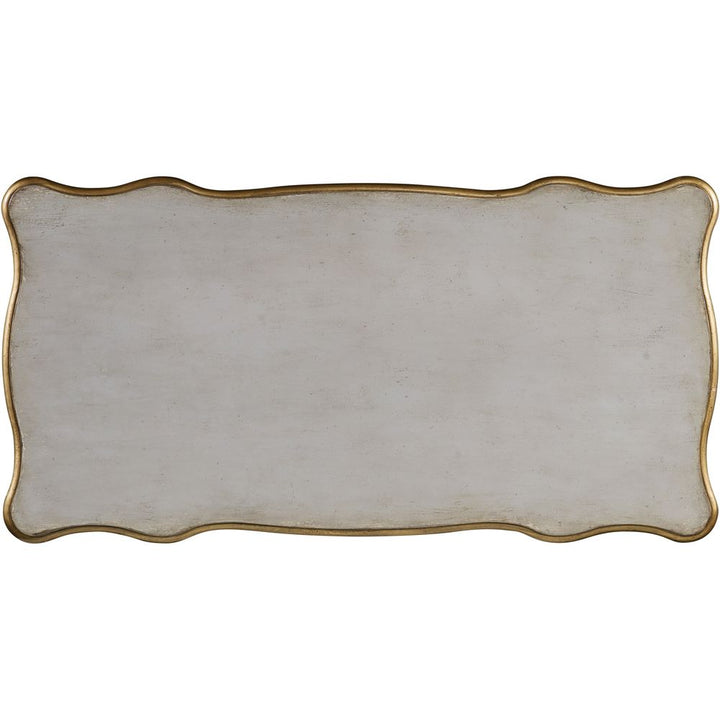 - Finish: Gray finish with gold accents. Distressing includes cow-tailing, rub-through and emulsion.