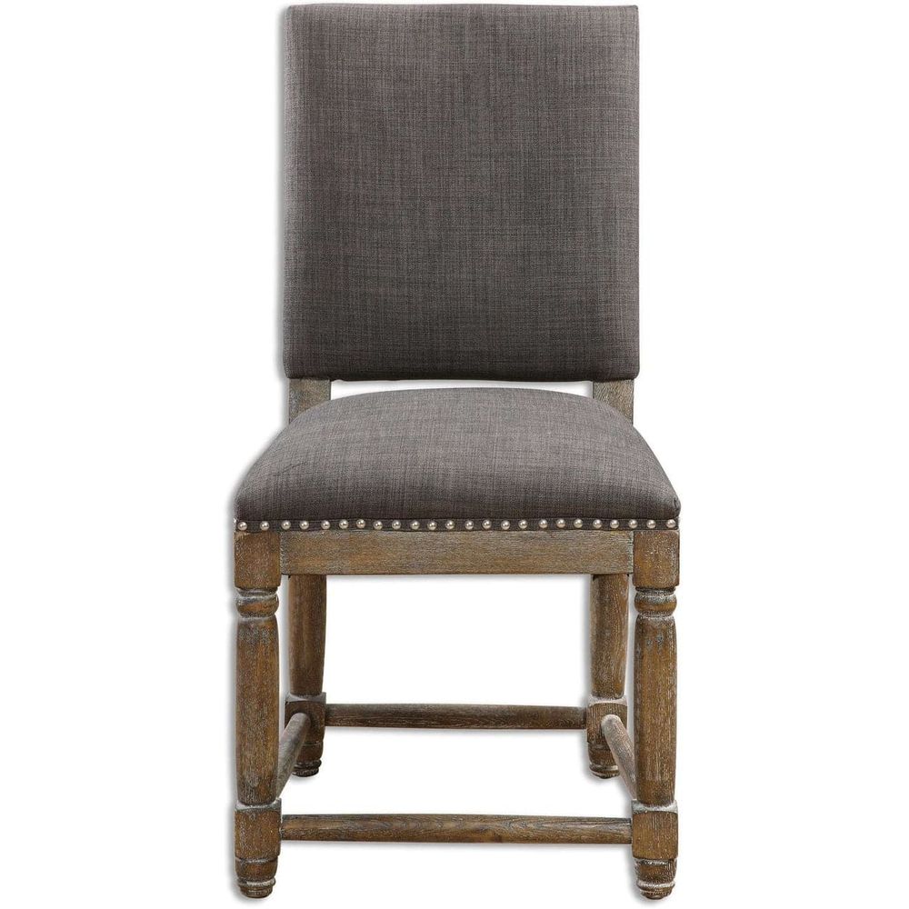 Weathered Gray Hardwood Base, Paired With Woven Polyester Seat And Back In Asphalt With Antique Brass Accent Nails. Seat Height Is 20".
