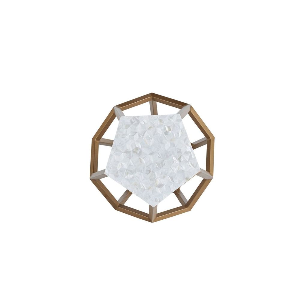 The Opaline Martini Table embraces a charmingly spirited appeal, crafted with a gorgeous mother of pearl tabletop accentuated by a soft gold, multidimensional metal base.