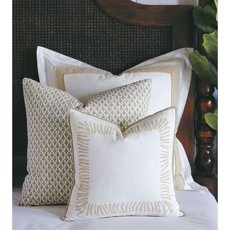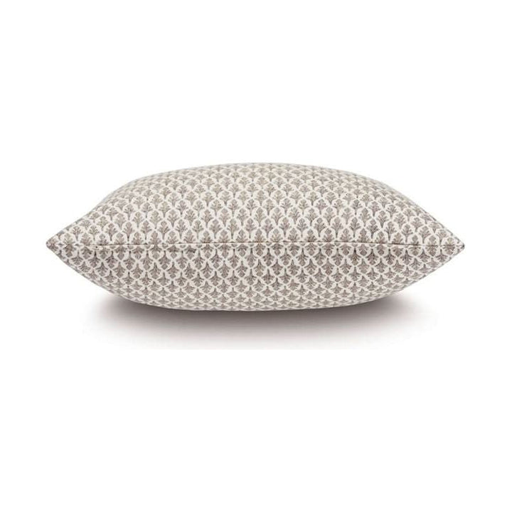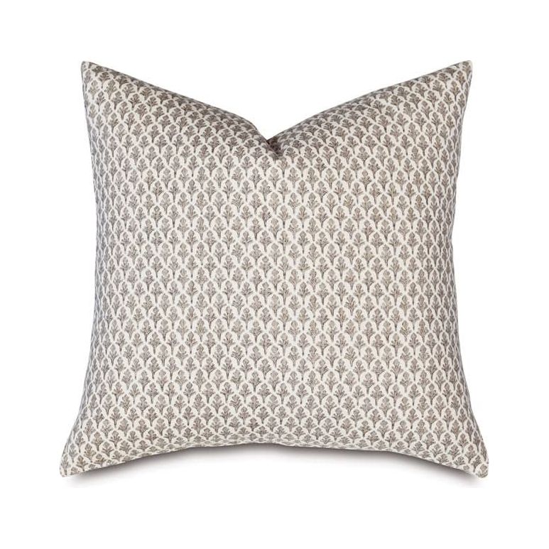 - Decorative pillow with small-scale repeating emblem motif in taupe