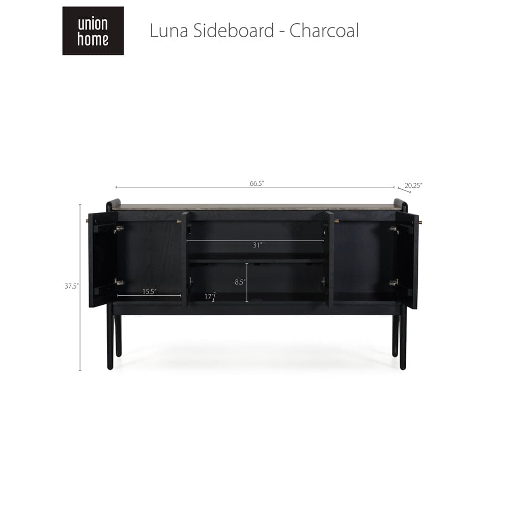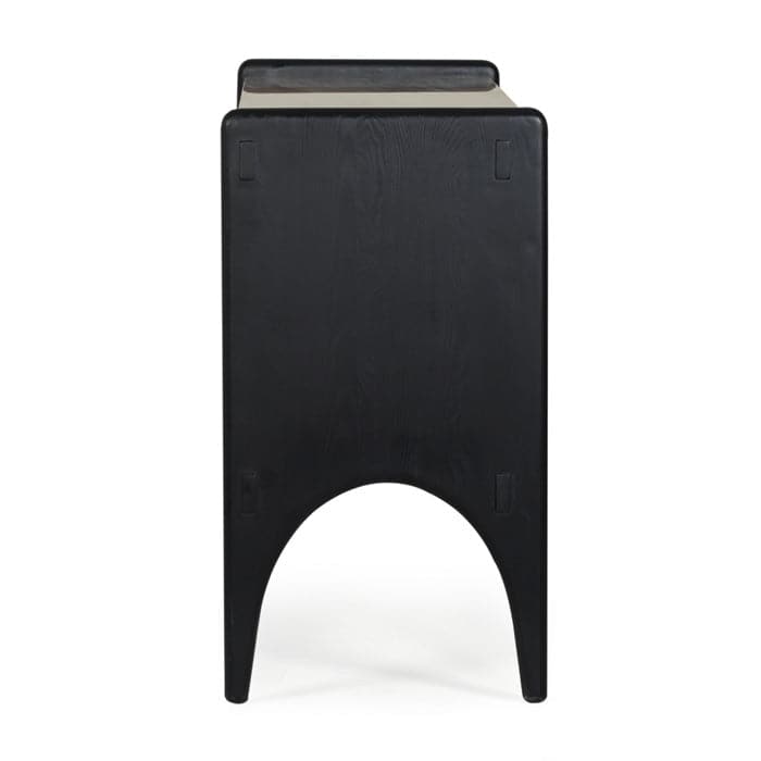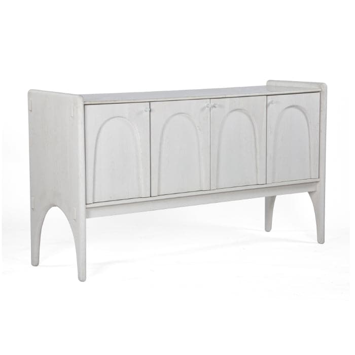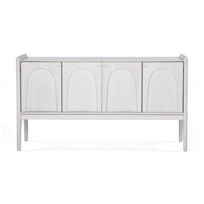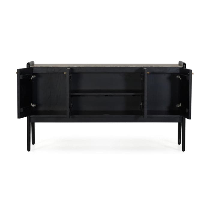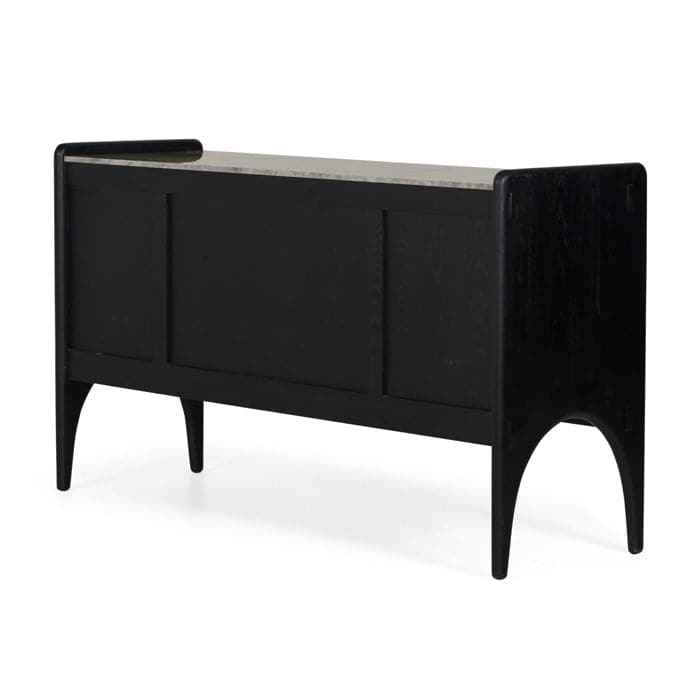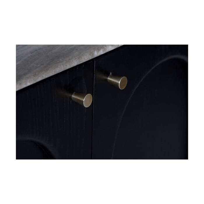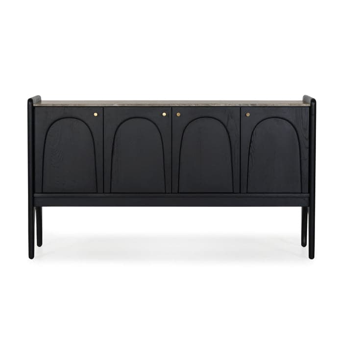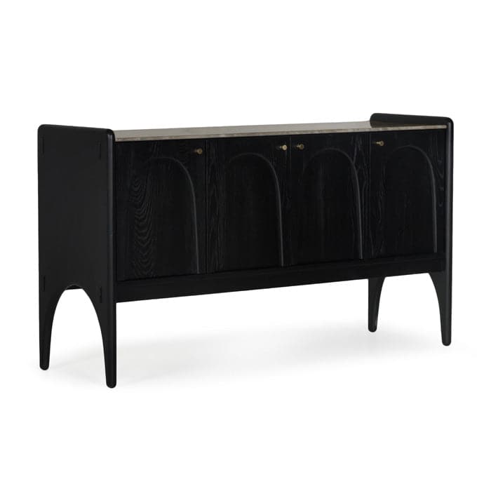 Inspired by arches from architectural landmarks, the Luna sideboard features dramatic geometry as both its structure and aesthetic. 4 doors with a raised arch motif conceal 3 storage compartments, the top is crafted from a solid stone panel.
