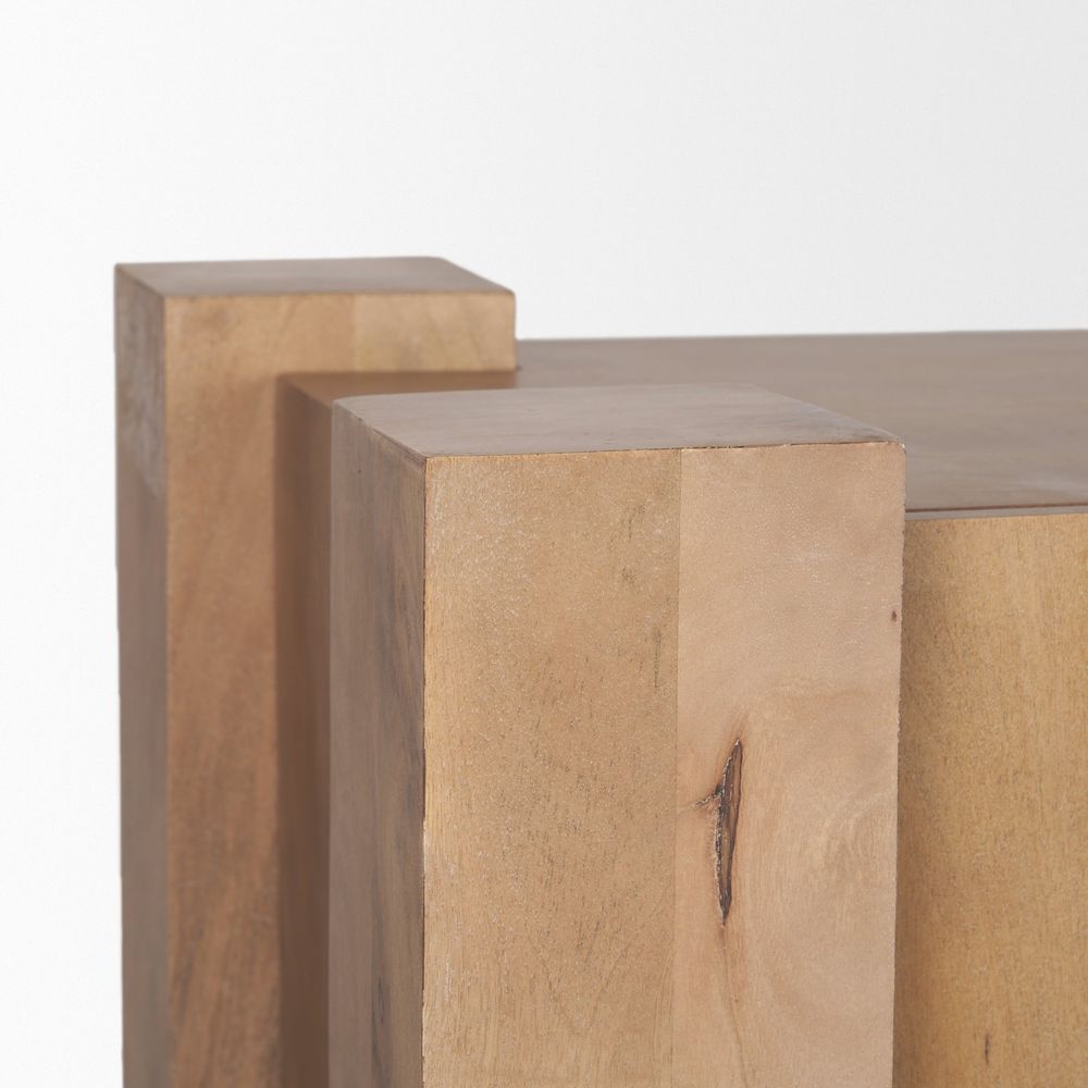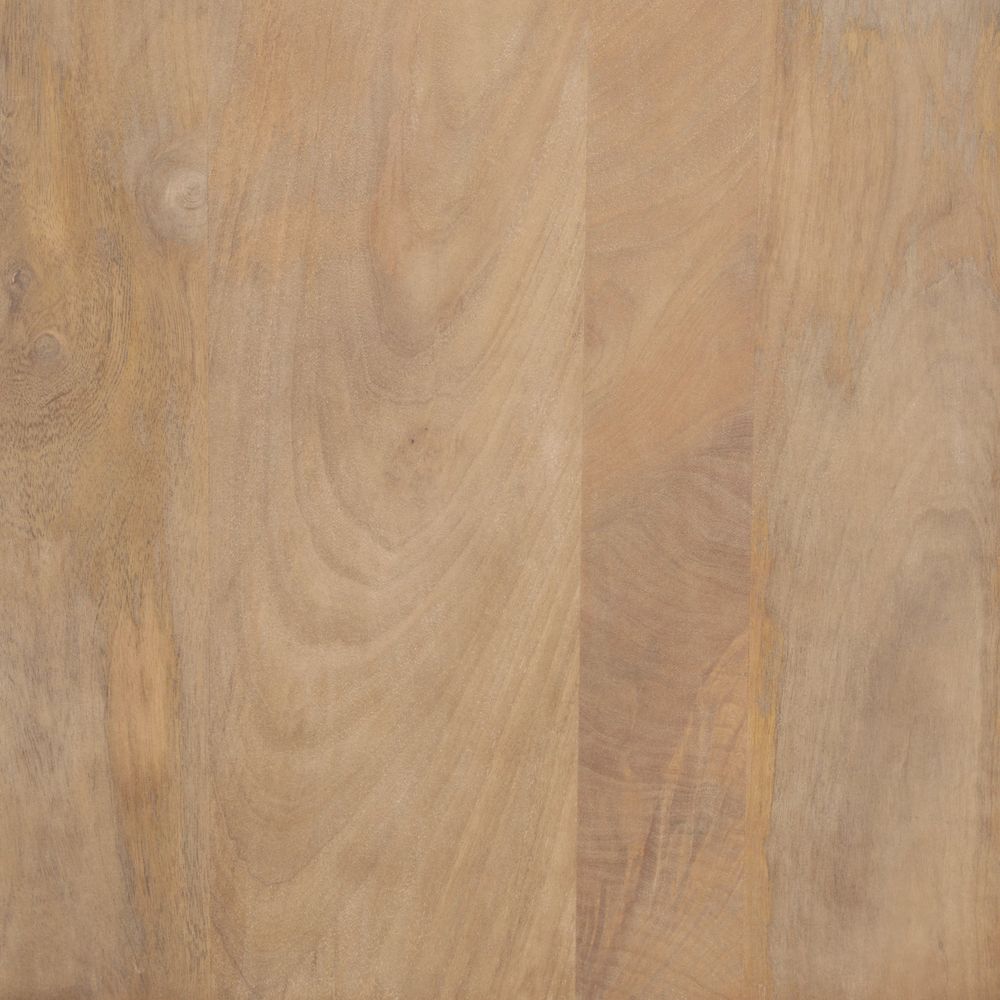 Feature#2: Crafted from mango wood and finished in a soft light brown stain with subtle white pickling.