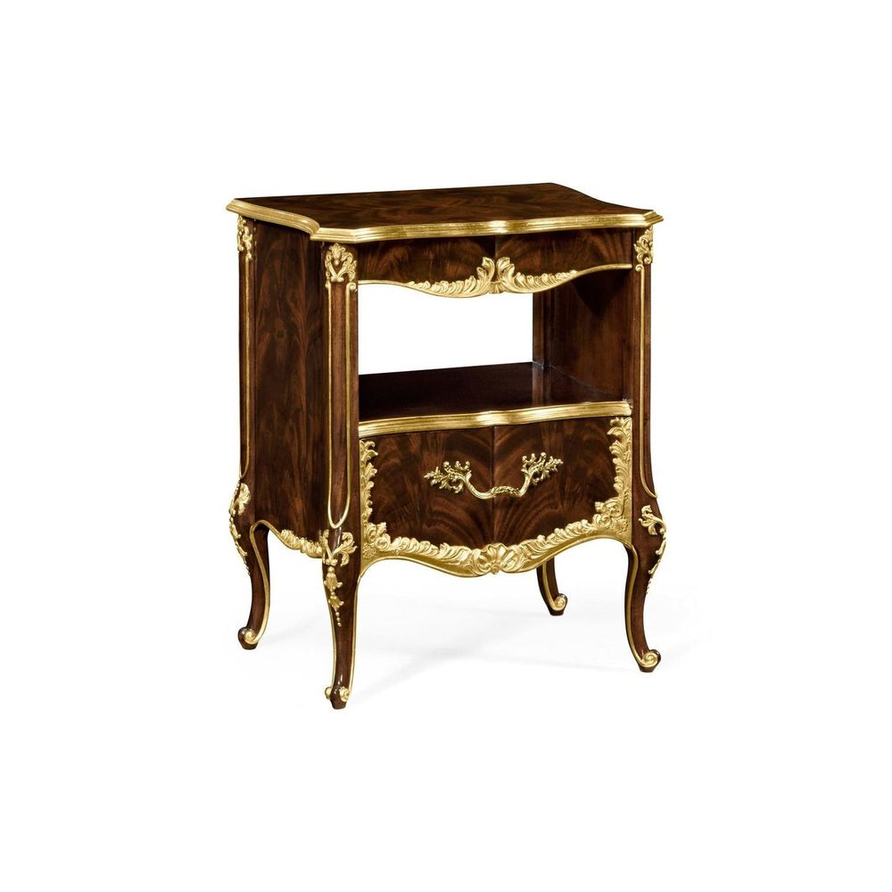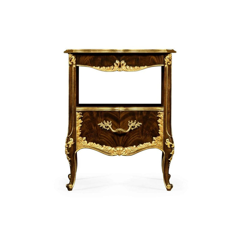Antique mahogany night stand with gilt carved detailling and a single drawer.