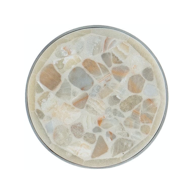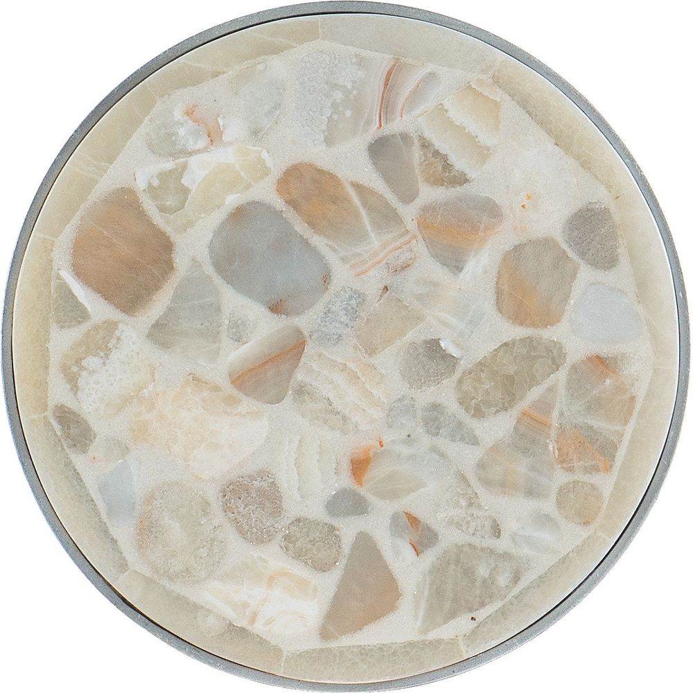 - Finish:Silver,Pewter metal base with tumbled white onyx