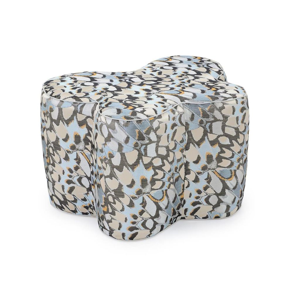 Papillon Large Ottoman shown in 5021 fabric. This butterfly-shaped ottoman features a tight seat with a contrasting welt on the top and bottom edges.