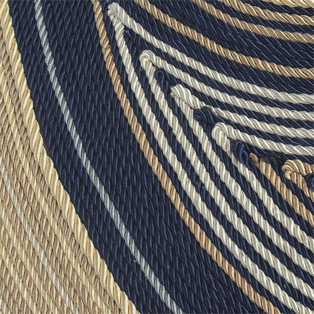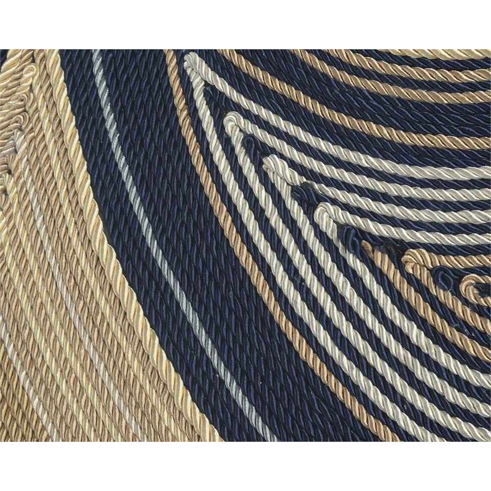 A visual fluidity of textile cording creates a flow or current of riches in variations of blue and gold. This piece by Matt McDowell is framed under glass in a soft gold-leaf molding.
