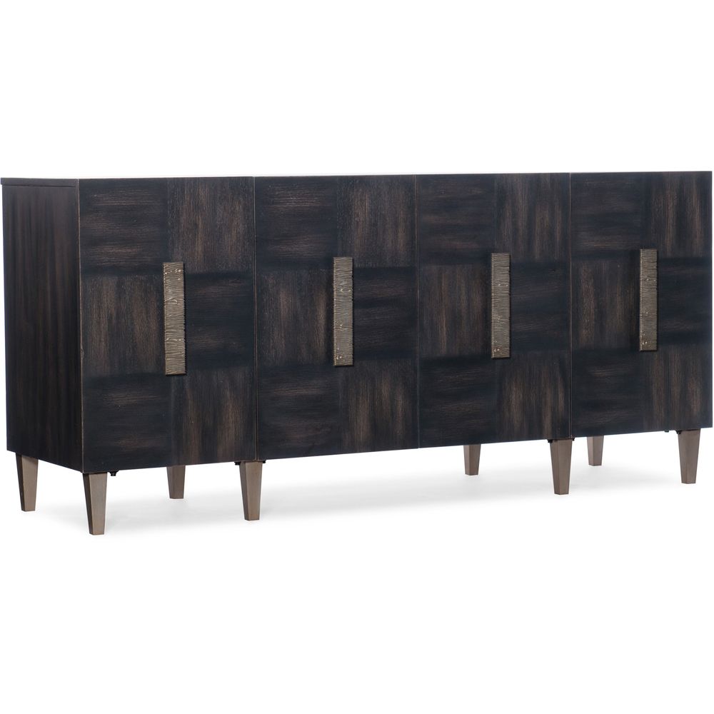 - Features: Four doors, One adjustable wood shelf behind each pair of doors, Ventilated back panel behind each pair of doors, Interior and exterior back panel same color as the case, Levelers, Wire accessible