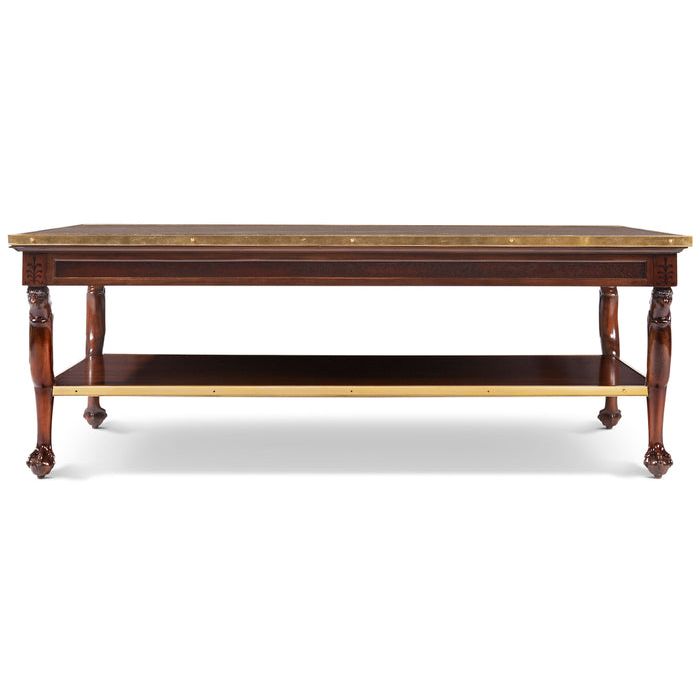 Based on an Empire Italian antique, Melinda features inset ebonized floral decorations, gray marble top and lower wood shelf with brass galleries, carved griffin head legs and paw feet.Theodore Alexander is shaped by English Heritage handcrafts furniture and accessories for your home with uncompromising quality. They also believe that the person who owns a piece of Theodore Alexander Furniture should take comfort in knowing the item can be viewed from any side and they have made the piece by using a time-honored, handcrafted method that is the true mark of high quality. Every piece of Theodore Alexander has a story just waiting to be shared.