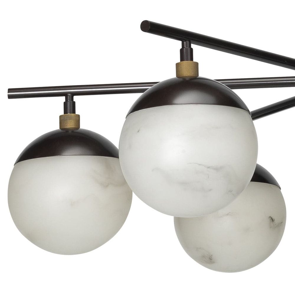 Spherical faux alabaster shades that soften and diffuse the lightbulbs hidden within are paired with oil rubbed bronze bases and hardware in these sleek pendant lamps from the Metro Collection. Their mid-century inspiration is injected with a decidedly urban zest, and they are available in three distinct styles perfect for grouping. The delicate swirl patterns and veining of natural stone in each shade are recreated carefully by hand from high quality resin and are unique to each piece. Professional installation is recommended.