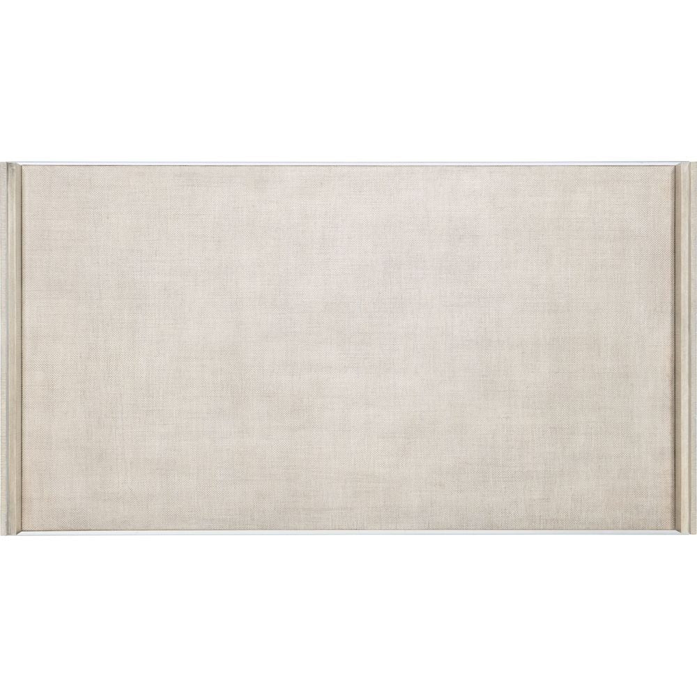 Description: Architectural and timeless with a luxe mixture of materials, the striking Modern Mood Rectangle Cocktail Table has a raffia-wrapped shelf beneath a one-inch-thick tempered glass top. With rounded sides, the table is crafted of Oak Veneers with tactile wire-brush detailing in a light Diamond finish with crystal-like alabaster and pewter hues, offering soft sophistication.