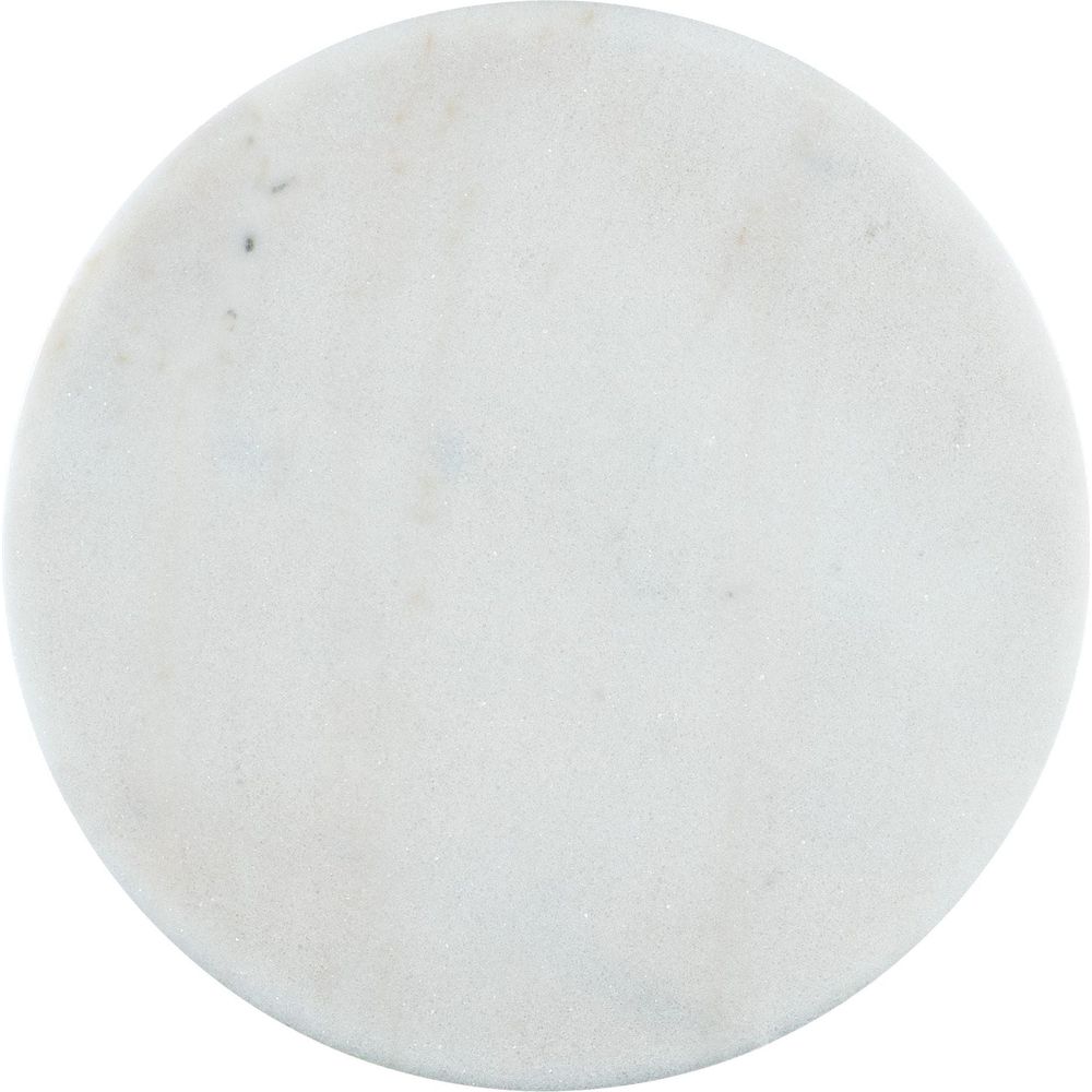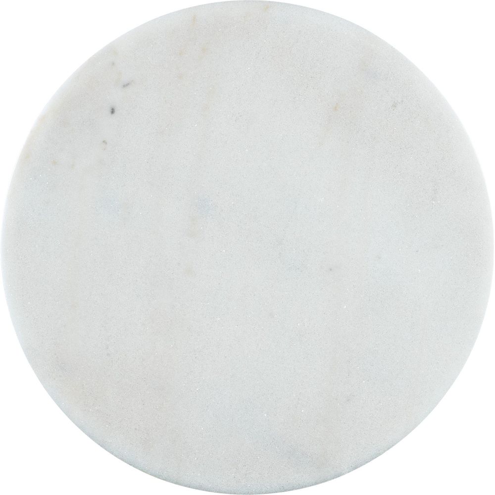 Features: Round shape; White marble top; Cone shaped base