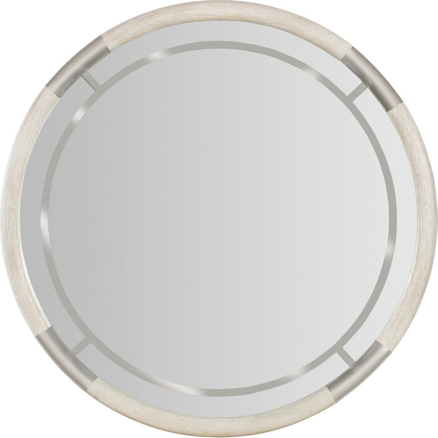 Description: In a timeless compass-like profile, the Modern Mood Round Mirror combines Quartered Oak Veneers in the Diamond finish with wire-brush detailing and warm pewter metal accents for a striking focal-point piece.