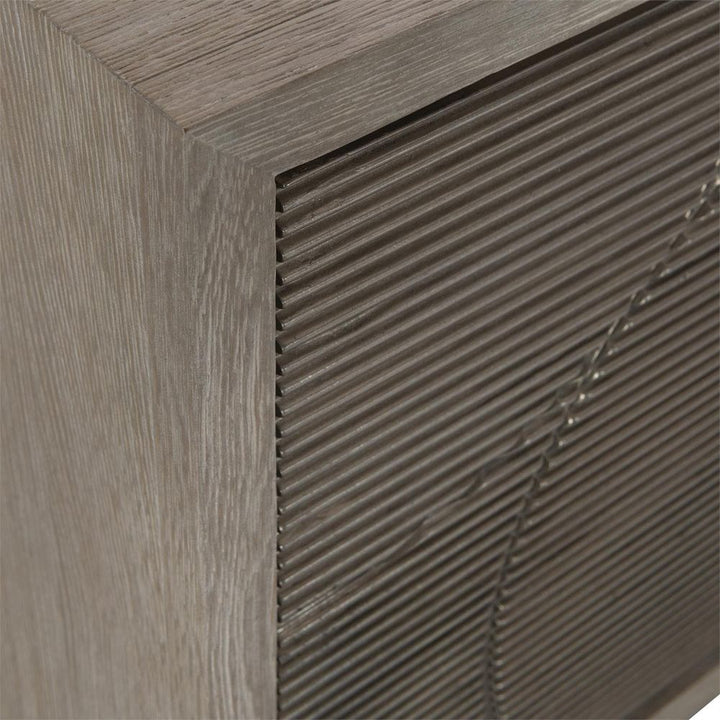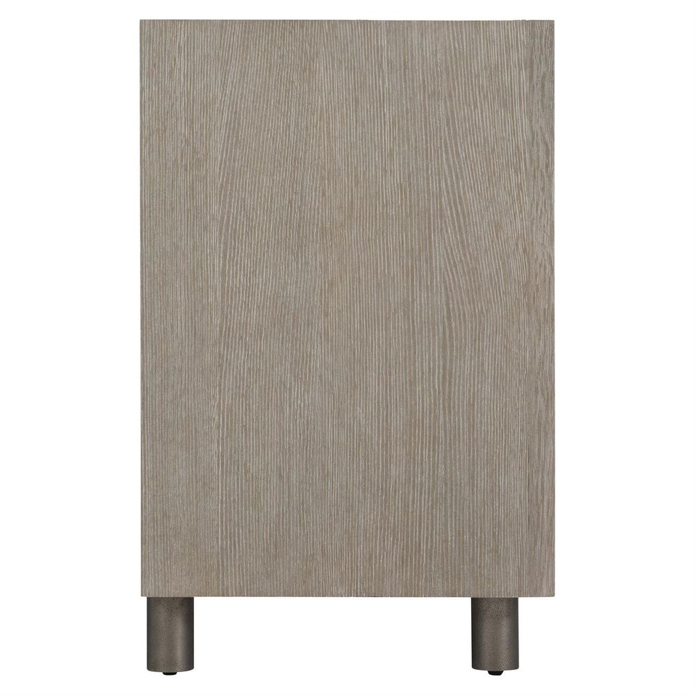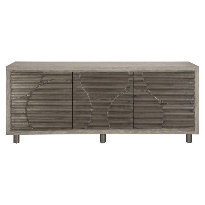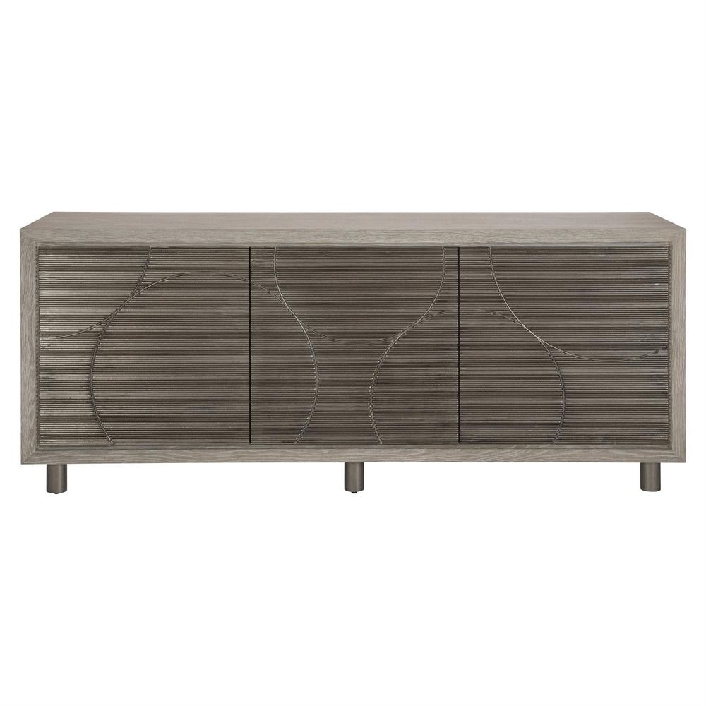 - Three push-to-open doors with circular patterned cast aluminum overlays in Graphite finish