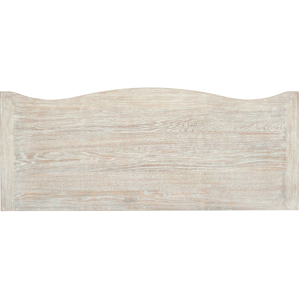 - Finish:Light Wood,Surf: light, airy whitewashed oak. Distressing includes sandblasting and wire brushing. Light champagne ring pulls.