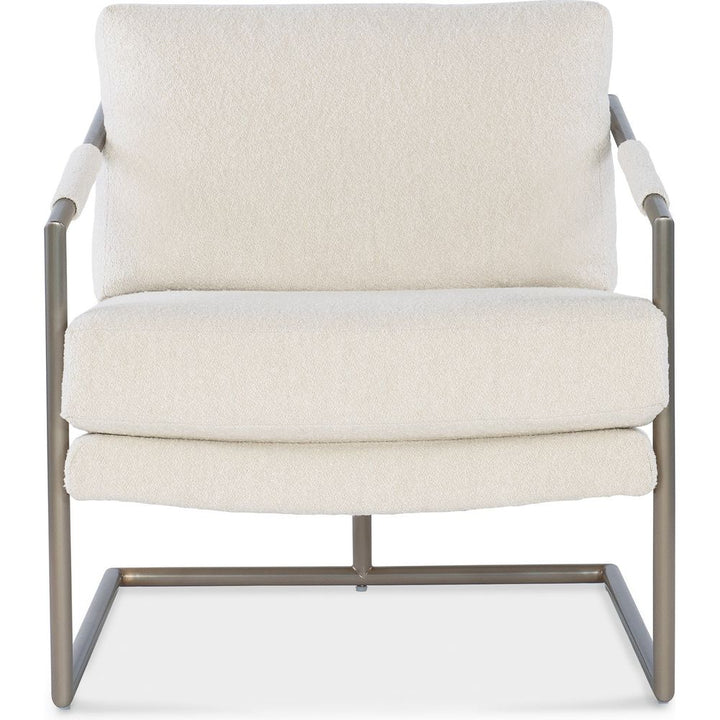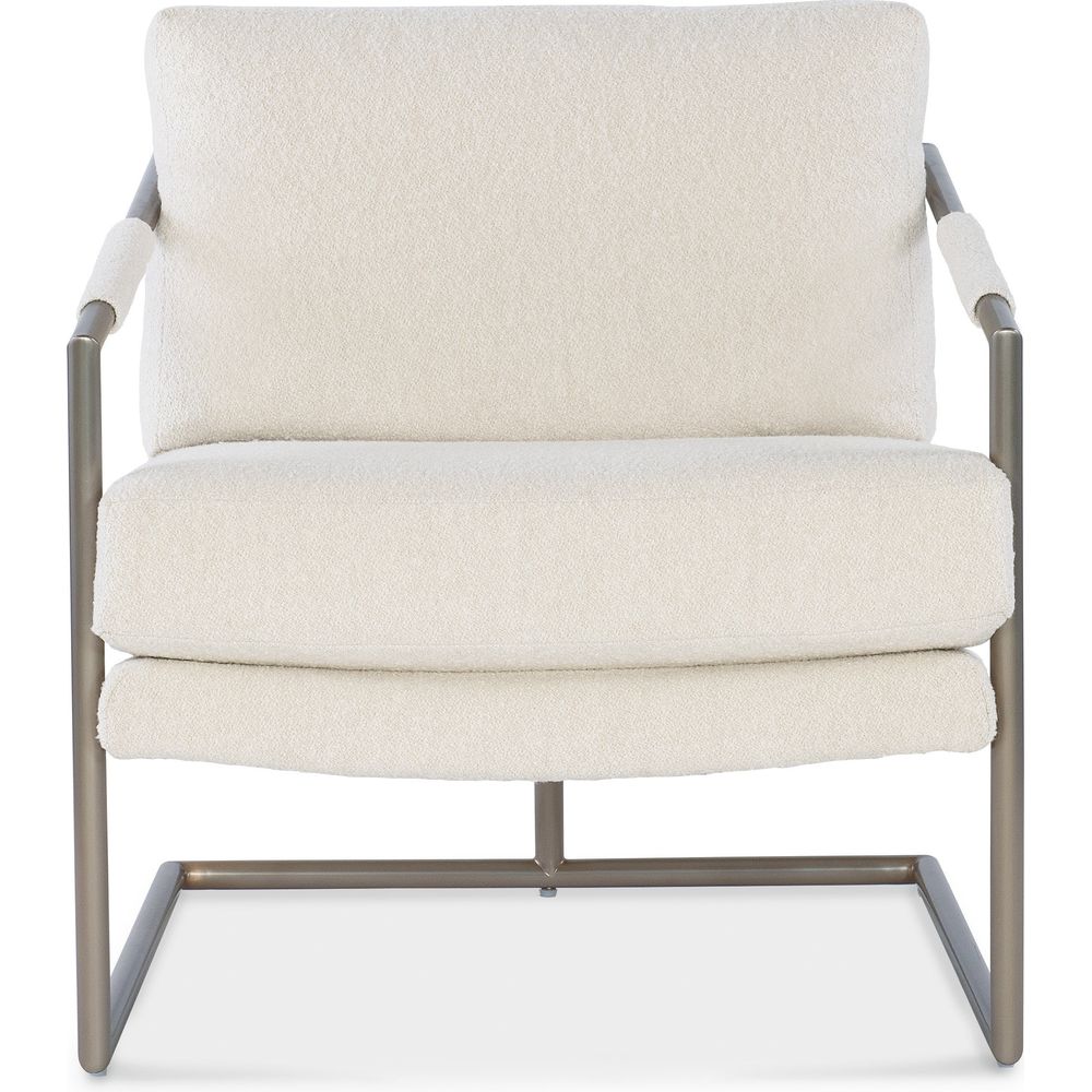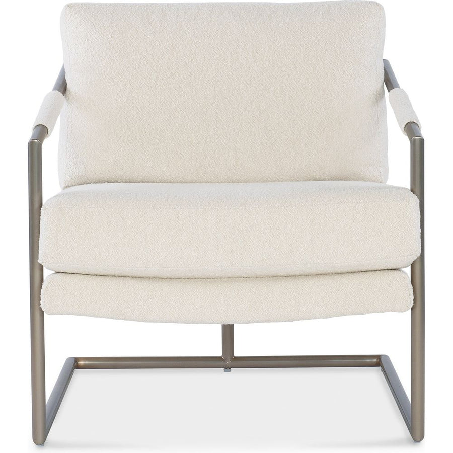 Description: Slinky, modern and luxurious, the Moody Metal Chair is upholstered in Inverness Natural fabric and has a polished stainless steel metal frame with fabric-wrapped arms.