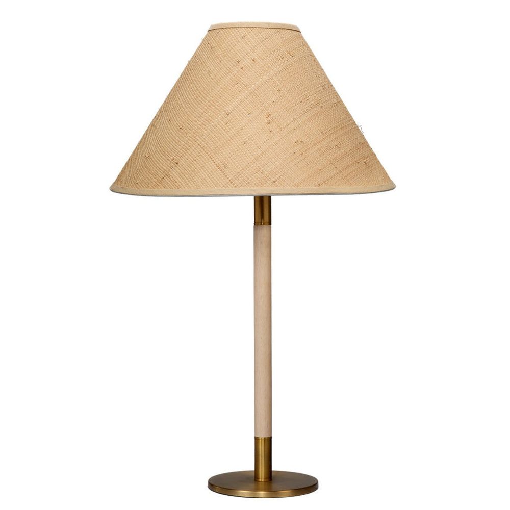 A medley of modern materials, the Morgana pairs wood with metal and natural fibers for a look that manages to be both timeless and contemporary. The slim base is rubberwood and is accented with warm gold. The dramatically angled cone shade is hand-woven of natural raffia. Exotic, but not intimidating, it is ideal for a globally inspired decor.