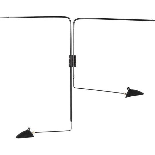 Originally designed by Serge Mouille, this wall sconce is representative of his discreet, yet highly functional designs. Handcrafted from powder coated aluminum, steel, and milled brass joints, this sconce will add a touch of mid-century modern flare to any space. Featuring arms that can move freely along the horizontal axis, and shades that can swivel a full 360 degrees, this piece allows you to play with how you light up your room. This sconce uses E12 chandelier bulbs which can be purchased at any home supply store.