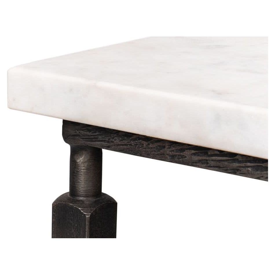Hand wrought iron legs with intricate turnings and curvature in this collection were all inspired by the arches, spires and other architectural details found in cathedrals and churches around the world. Mykos pays special tribute to a church in Greece with its beautiful marble surface adding drama and functionality to these must have items.