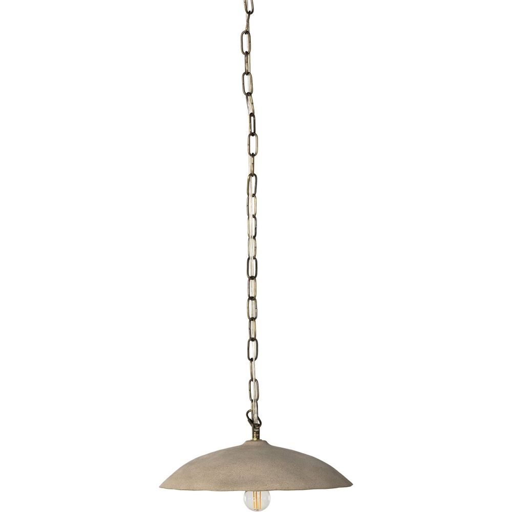 Organic in spirit. A light sand-colored talavera pendant pairs with an iron chain for a spare but impactful look.