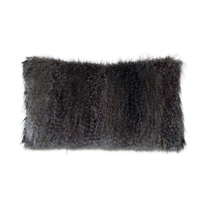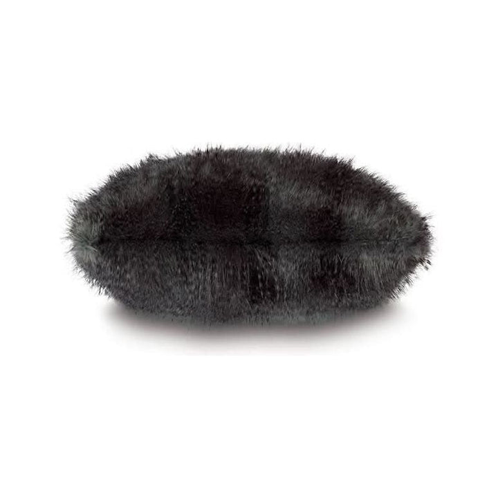 - Charcoal graydecorativepillow in a printedfaux furfabric