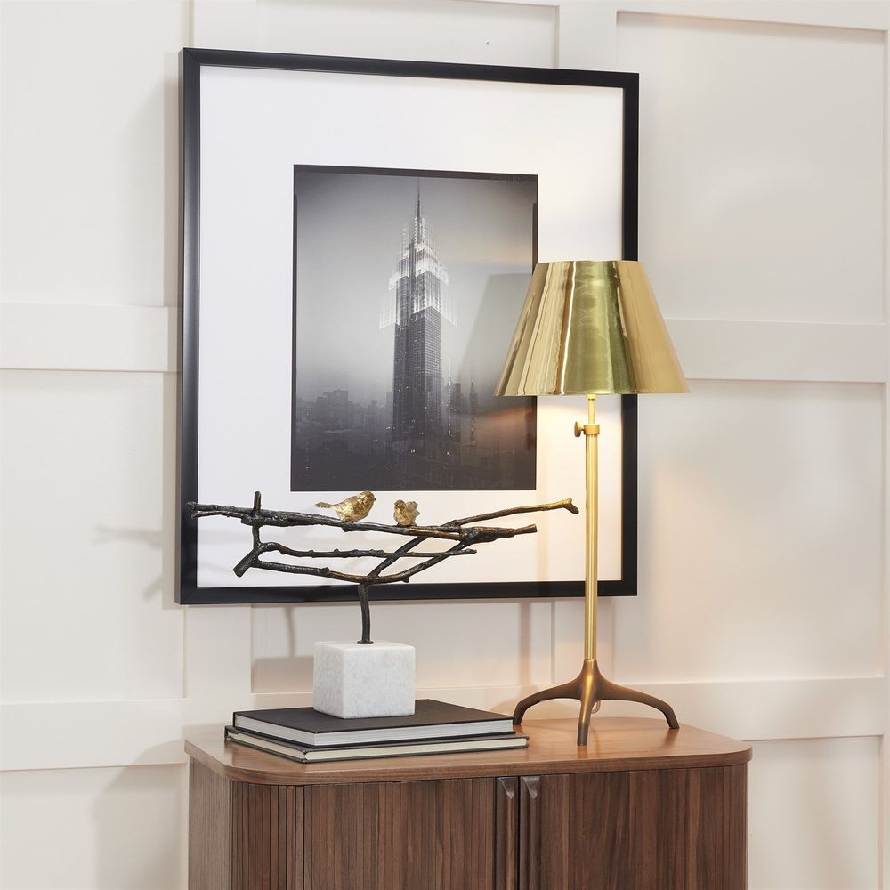 Description: Love birds create their own home in the Nesting Bird Sculpture in Bronze set atop a white marble plinth. This sculpture is romantic and warms the heart. The perfect accessory for any home environment.