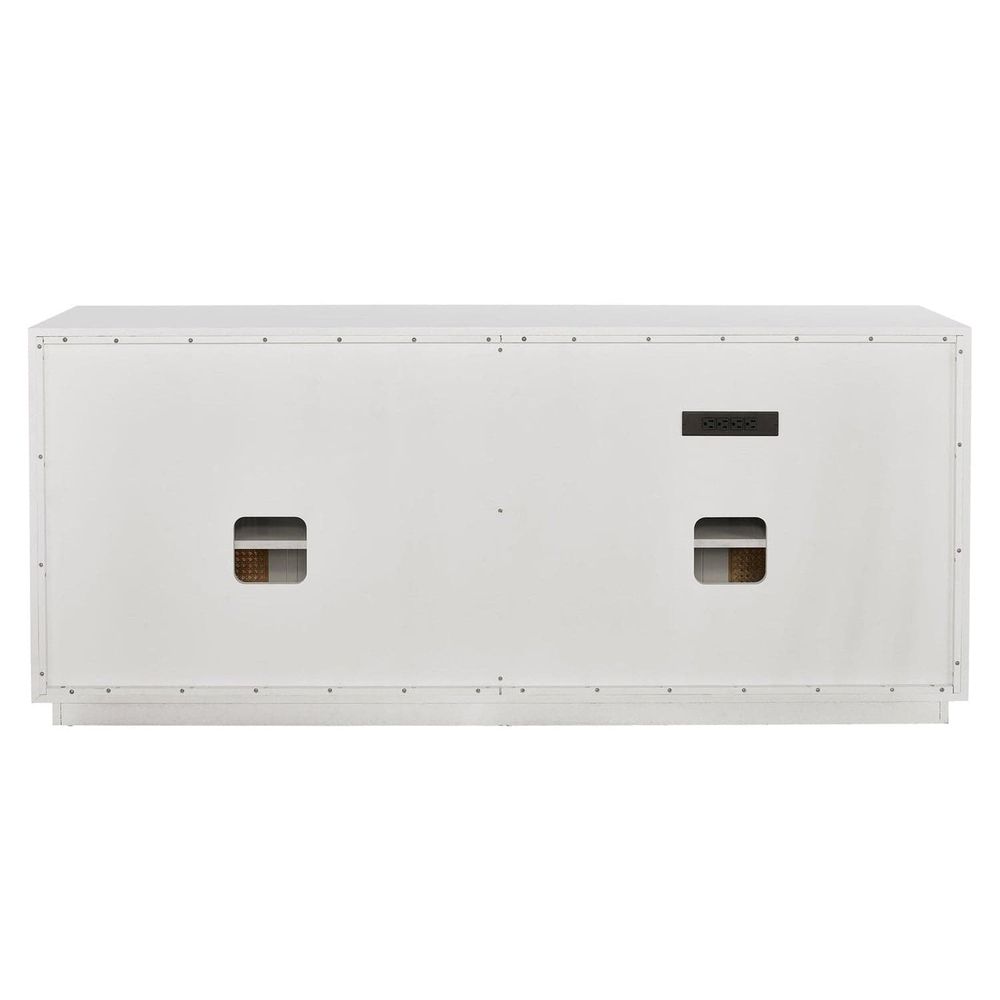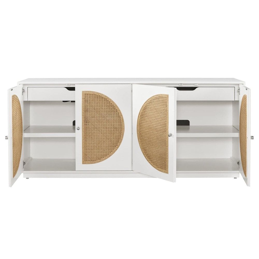 Bright and full of life, the Entertainment Credenza creates a striking focal point for any home living space with textured, half-moon-shaped cane doors framed inside a sleek white body.