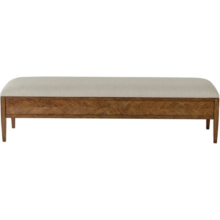 The perfect addition to the foot of any bed, this rustic oak bench, pictured in the Dusk finish, stands on tapered oak legs and features a refined upholstered seat.Theodore Alexander is shaped by English Heritage handcrafts furniture and accessories for your home with uncompromising quality. They also believe that the person who owns a piece of Theodore Alexander Furniture should take comfort in knowing the item can be viewed from any side and they have made the piece by using a time-honored, handcrafted method that is the true mark of high quality. Every piece of Theodore Alexander has a story just waiting to be shared.