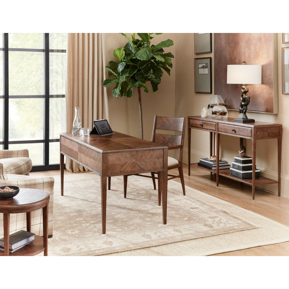 Seen here in our Dusk finish with tapered oak leg, the NOVA dining Arm Chair is a classic with hand-carved oak and a parquetry design. Striving for functionality, this upholstered seat is constructed with a top and mid rail bar joined by stretchers.Theodore Alexander is shaped by English Heritage handcrafts furniture and accessories for your home with uncompromising quality. They also believe that the person who owns a piece of Theodore Alexander Furniture should take comfort in knowing the item can be viewed from any side and they have made the piece by using a time-honored, handcrafted method that is the true mark of high quality. Every piece of Theodore Alexander has a story just waiting to be shared.