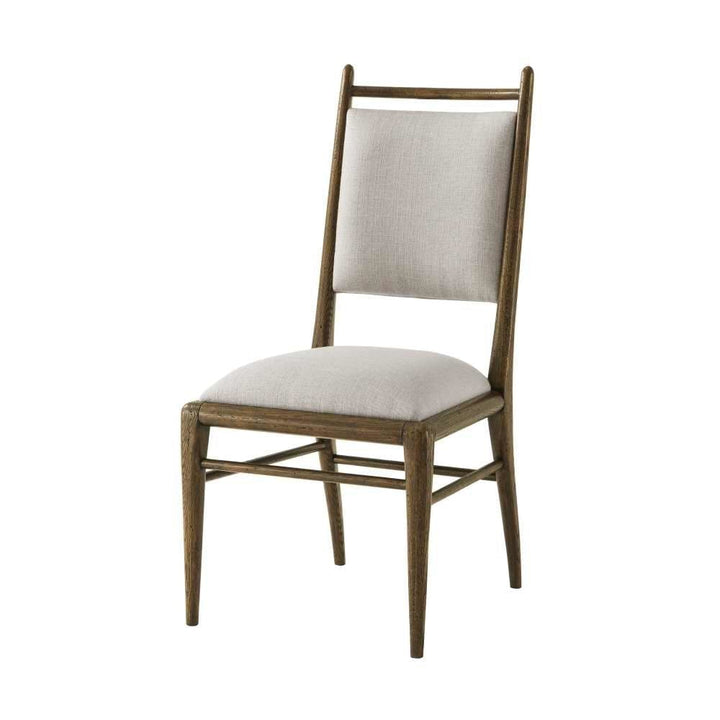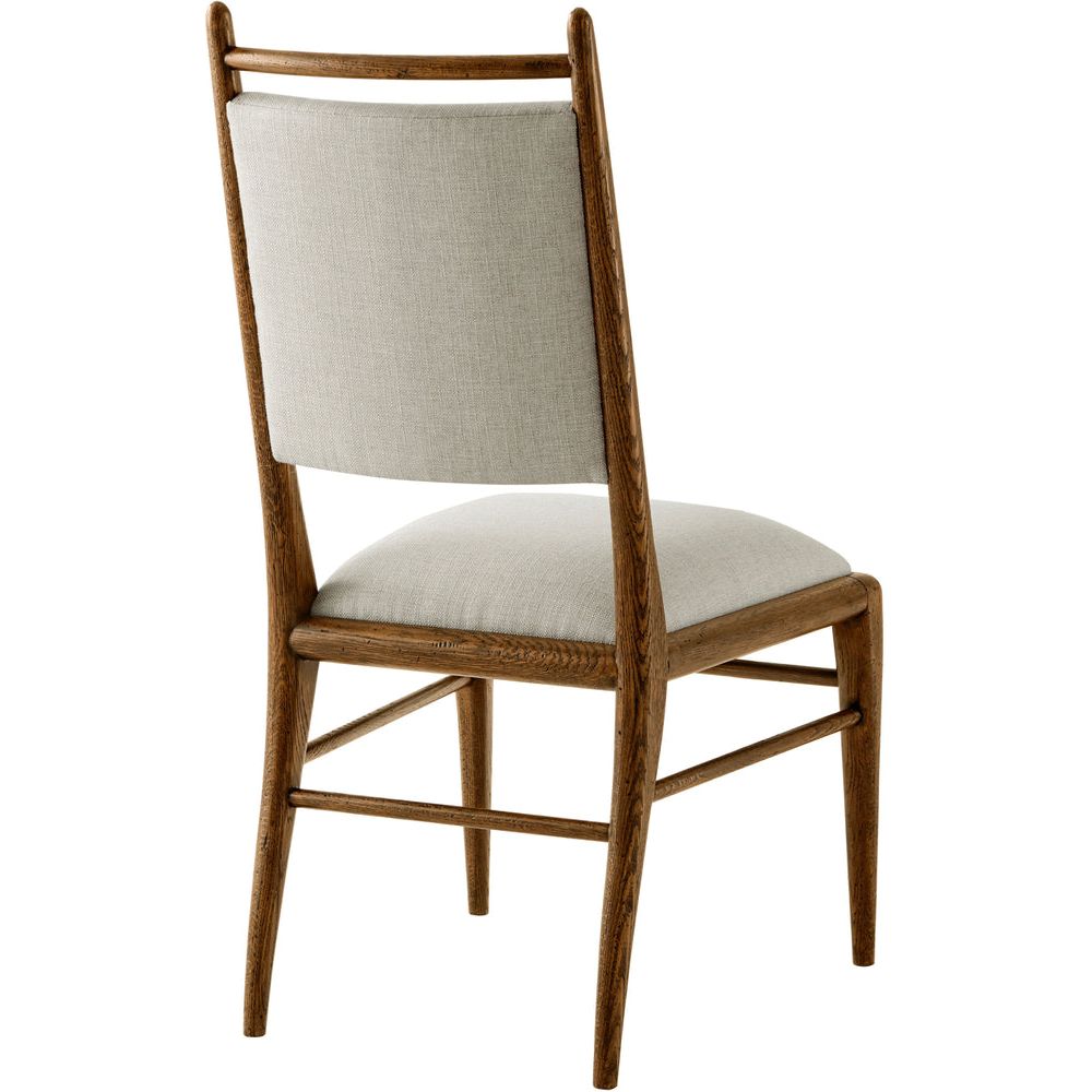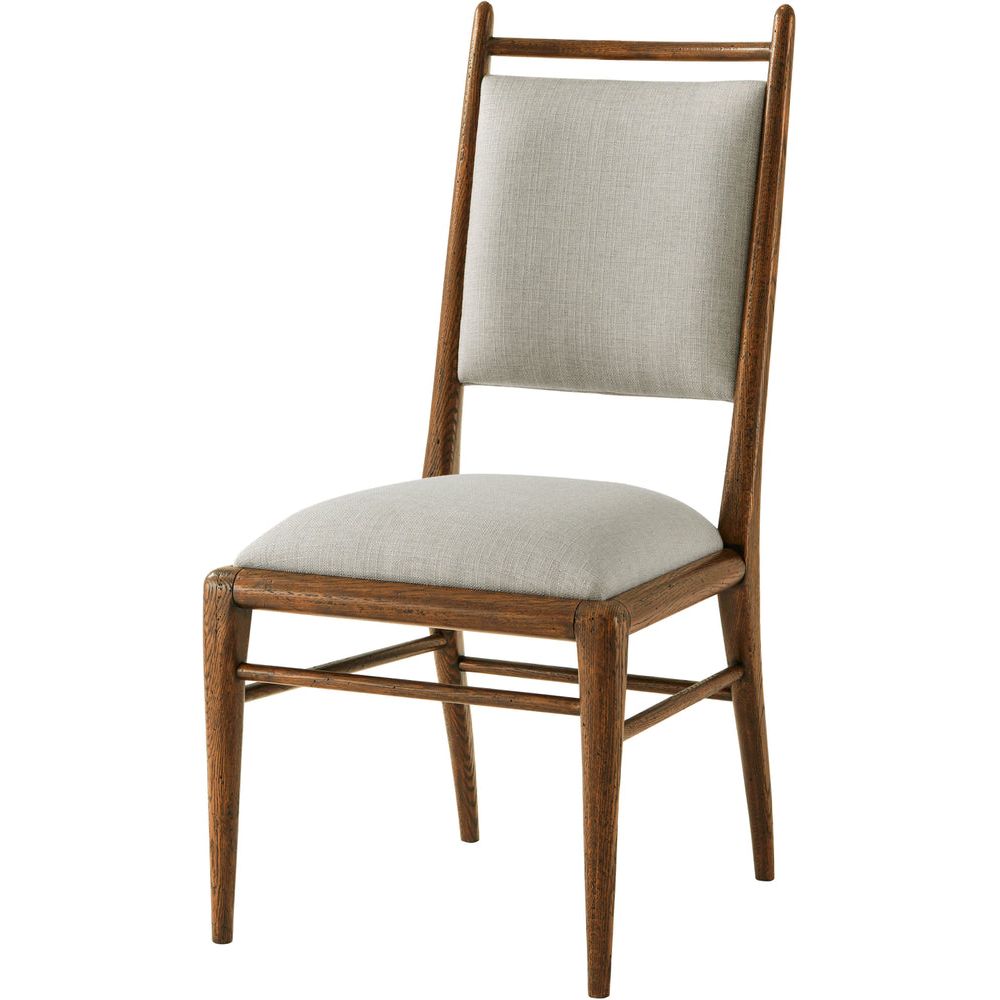 Seen in our Dusk finish, this endearing side chair displays a charmingly upholstered backrest and seat for added comfort on tapered oak legs joined by supportive stretchers.Theodore Alexander is shaped by English Heritage handcrafts furniture and accessories for your home with uncompromising quality. They also believe that the person who owns a piece of Theodore Alexander Furniture should take comfort in knowing the item can be viewed from any side and they have made the piece by using a time-honored, handcrafted method that is the true mark of high quality. Every piece of Theodore Alexander has a story just waiting to be shared.
