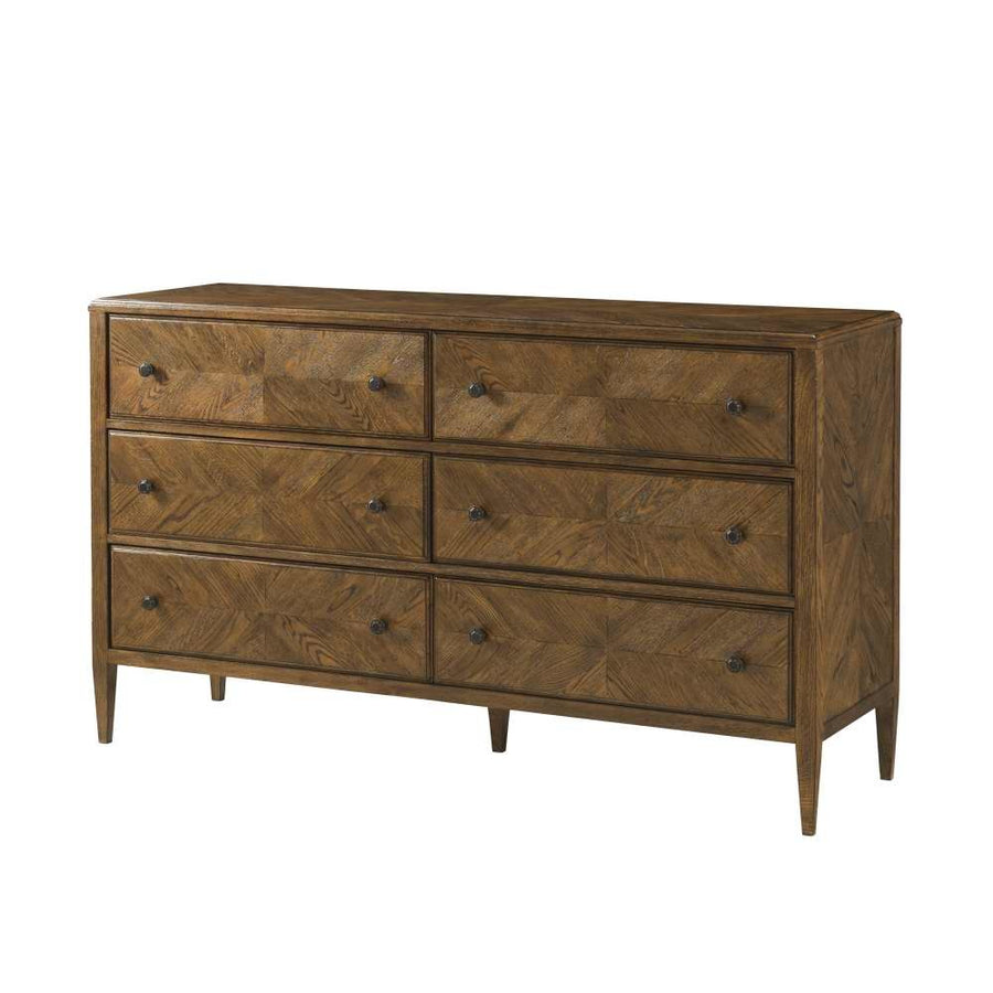 A luminary moment, NOVAs architecturally detailed oak parquetry dresser fitted with six hand-veneered drawers is an ideal piece for your bedroom. The Dawn finish pairs immaculately with the tapered oak legs and fine Verde Bronze handles.Theodore Alexander is shaped by English Heritage handcrafts furniture and accessories for your home with uncompromising quality. They also believe that the person who owns a piece of Theodore Alexander Furniture should take comfort in knowing the item can be viewed from any side and they have made the piece by using a time-honored, handcrafted method that is the true mark of high quality. Every piece of Theodore Alexander has a story just waiting to be shared.