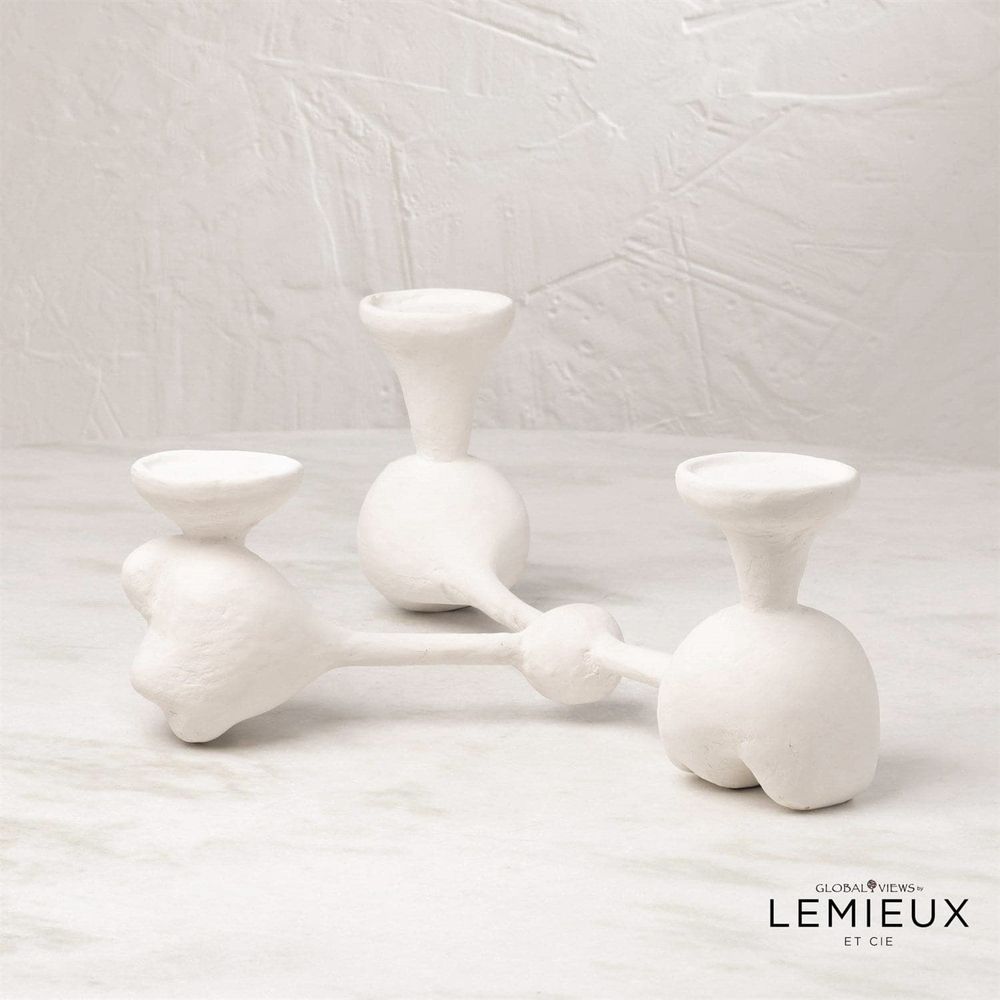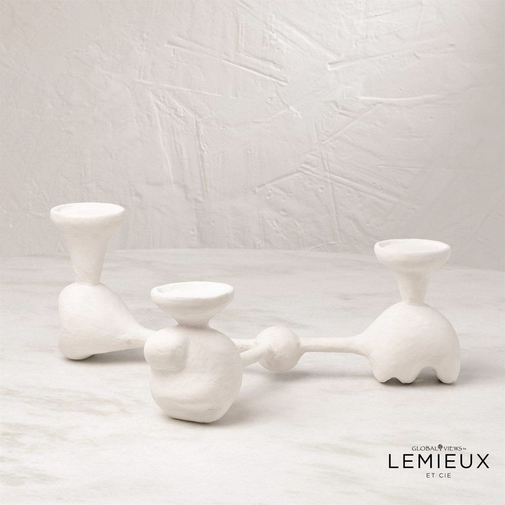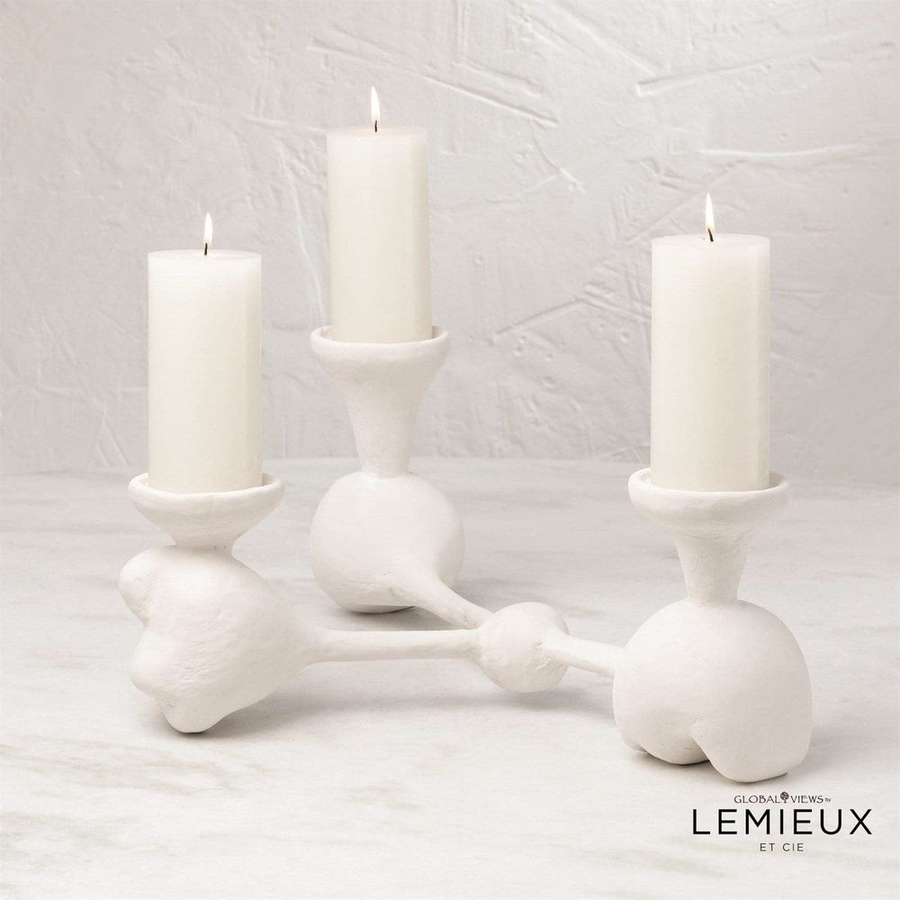 The Nunez Modern Candelabra is a uniquely sculptural piece. Created as one beautiful shape, it can be used alone or layered in pairs to create a beautiful modern organic tablescape.