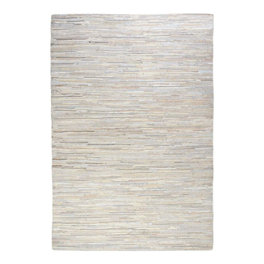 Hand Woven Hemp And Recycled Leather In Tones Of Light Beige, Cool Grays And Subtle Hints Of Blue.