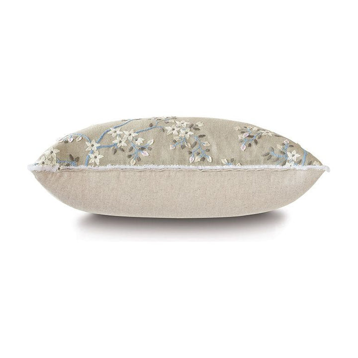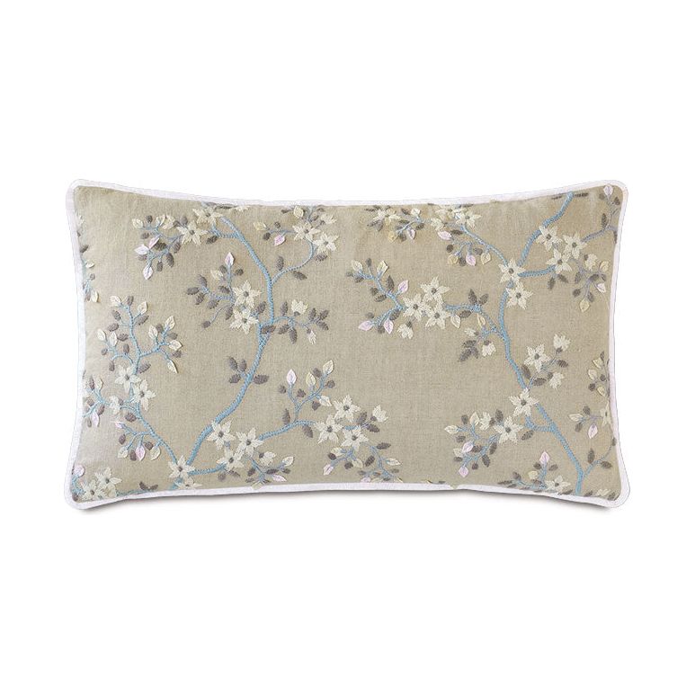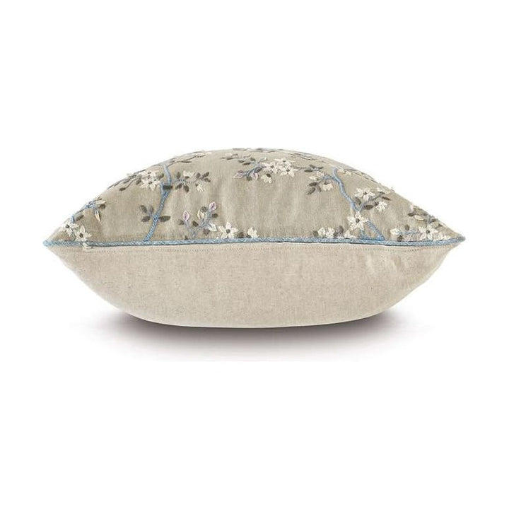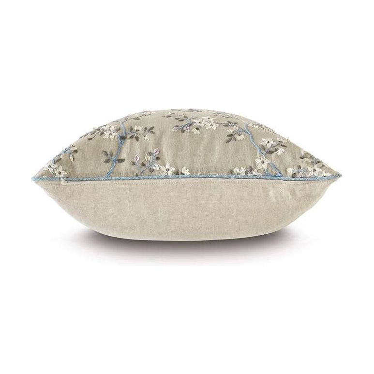 - Embroidered linen blend floral decorative pillow