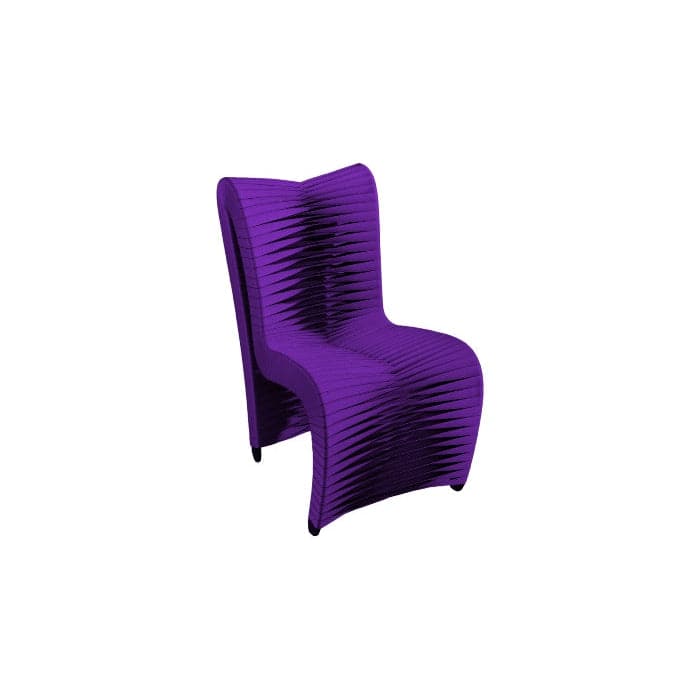 The Seat Belt High-Back Purple Dining Chair is one of many offerings in this contemporary seating collection by award-winning Thai designer Nuttapong Charoenkitivarakorn. The design was inspired by the intertwining spools of fabric seen when visiting a seat belt factory. Nuttapong's striking chairs are easily recognizable by the braided backside and stiletto profile. The straps are woven on a frame made of wood that is reinforced with metal.