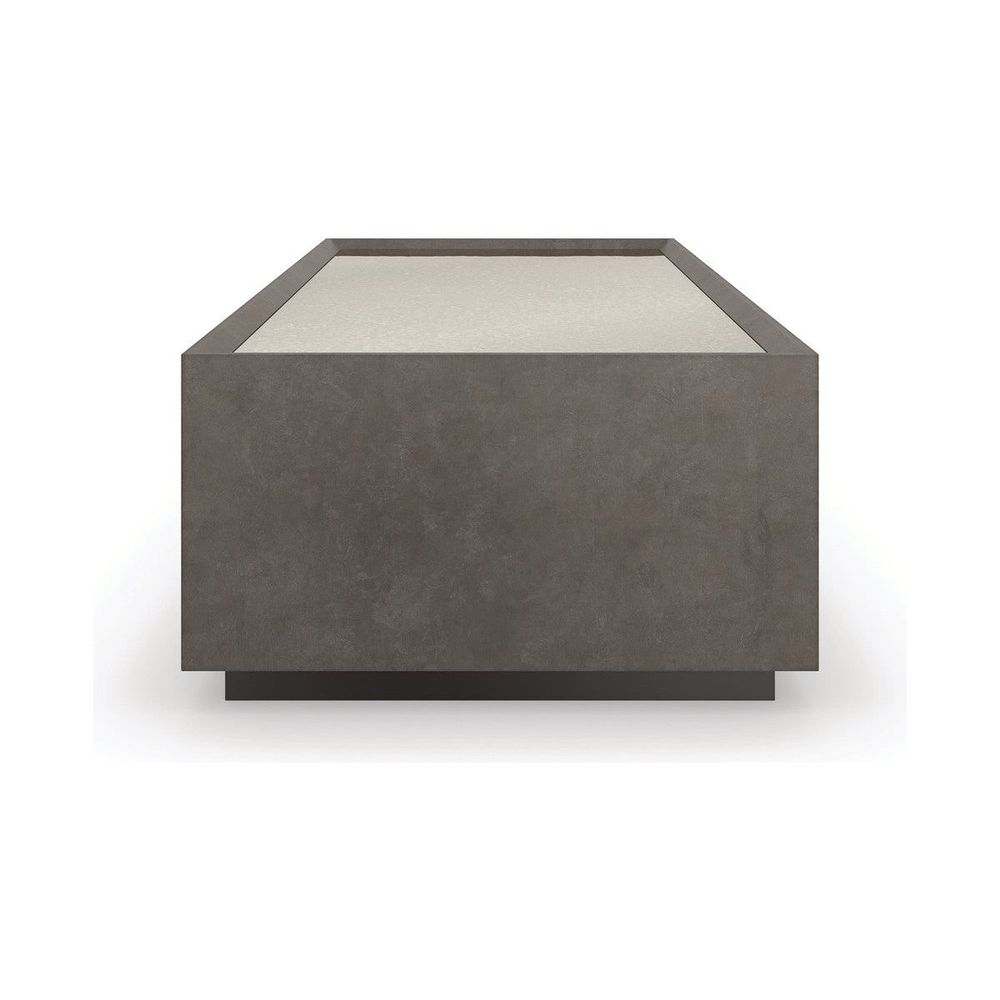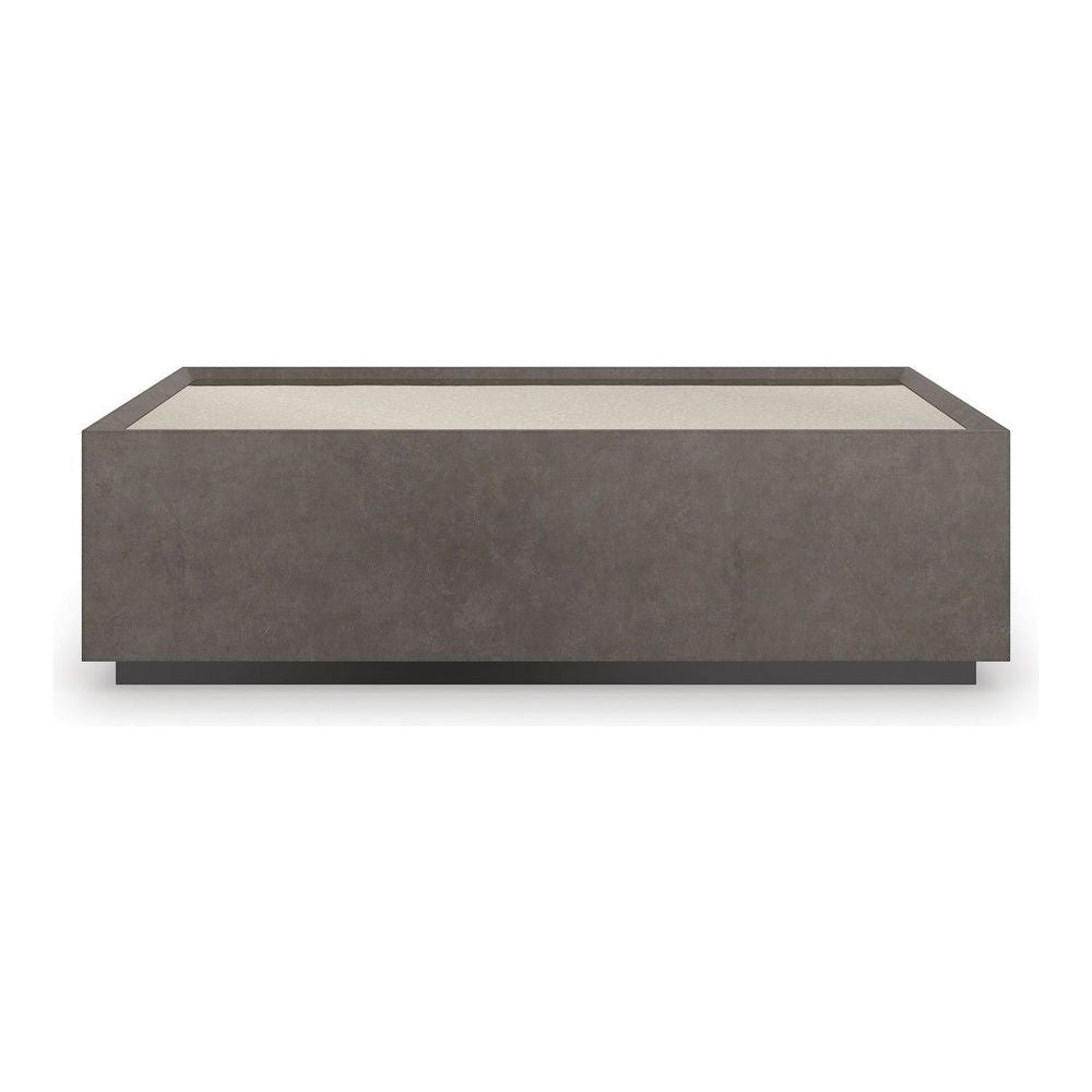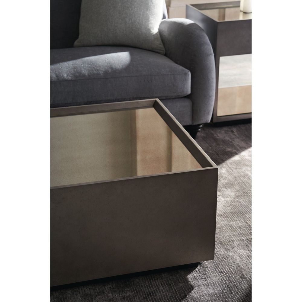 A designer go-to, this simple yet refined cocktail table adds depth and warm reflection in an alluring mix of materials and finishes. The same size and scale as our beloved Cocktail Couture table, it features a recessed antique mirrored top and overall broken leaf finish in Twilight Frost. A fade-away, Almost Black plinth base gives it a floating appearance. Style with a pair of our Dark Matter end tables to create a seating space with infinite shimmer and design potential.