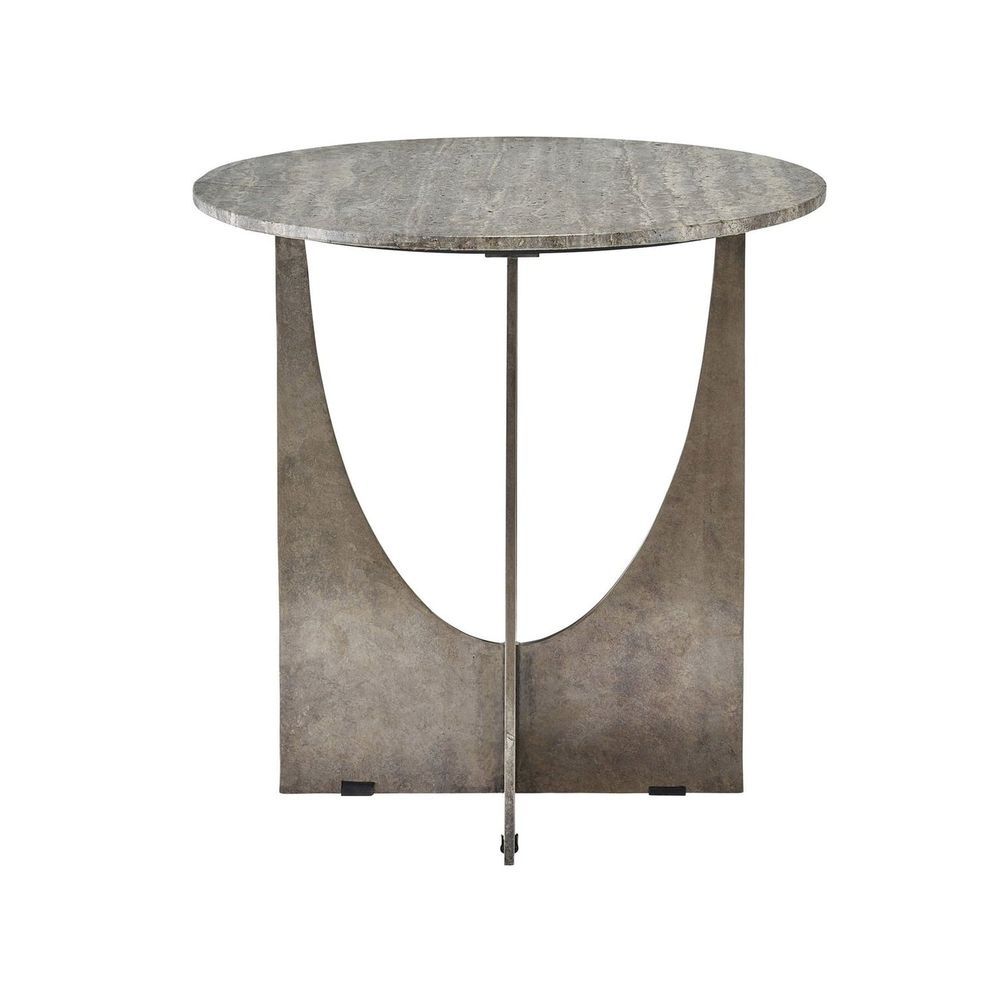 Punctuate sofas and accent chairs with the unique Op Art End Table, a optically-inspired piece showcasing a forward-thinking juxtaposition of curved and linear edges finished in a dynamic, bronzed hue.