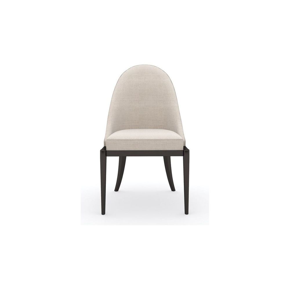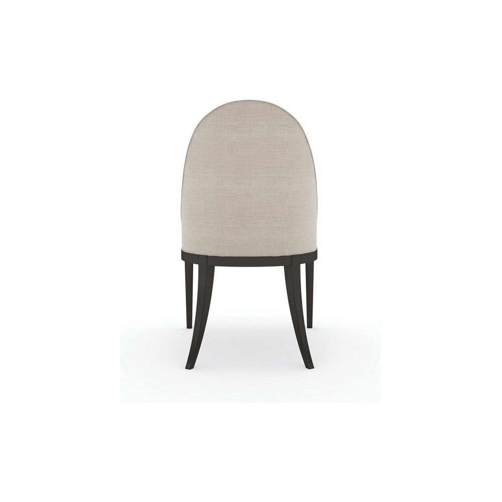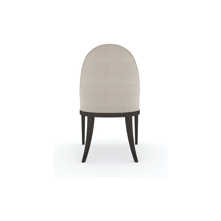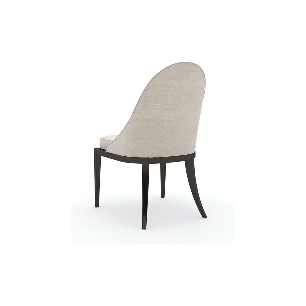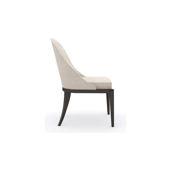 With a comforting curve along the back and arms, this modern side chair introduces a style that's unpretentious, yet elegant and refined. Accented by welt, its simple silhouette is beautifully balanced on an exposed wood frame and tapered legs in Dark Chocolate. Expertly tailored in a beige basketweave performance fabric that's durable and easy to clean. Pair with a desk to elevate working from home.