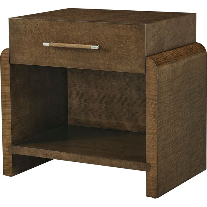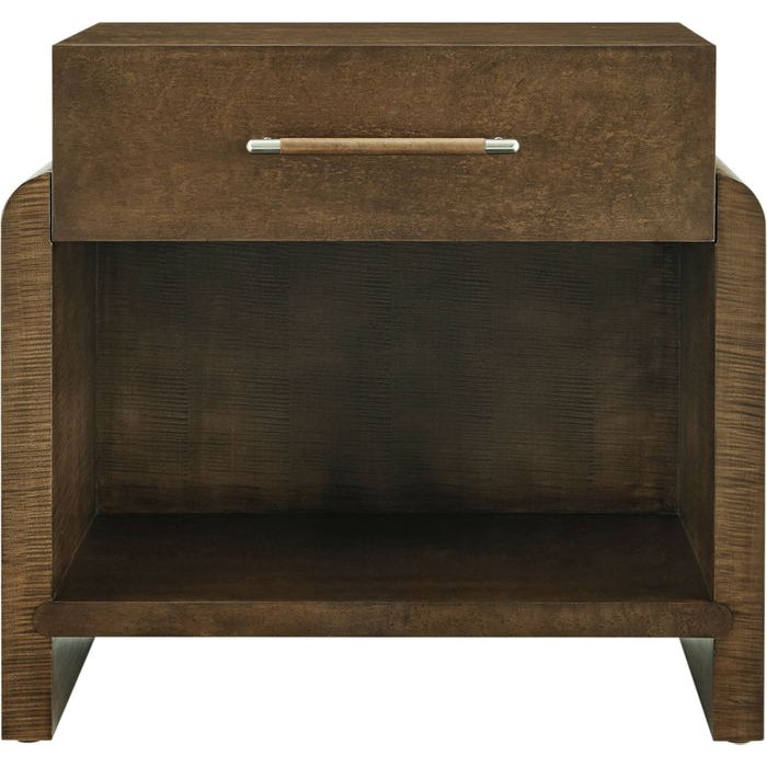 Free from heavy ornamentation, the Origins Nightstand maintains a clear adherence to the principles of modernism. One soft-close drawer constructed from birdseye maple rests within a body of figured sycamore.