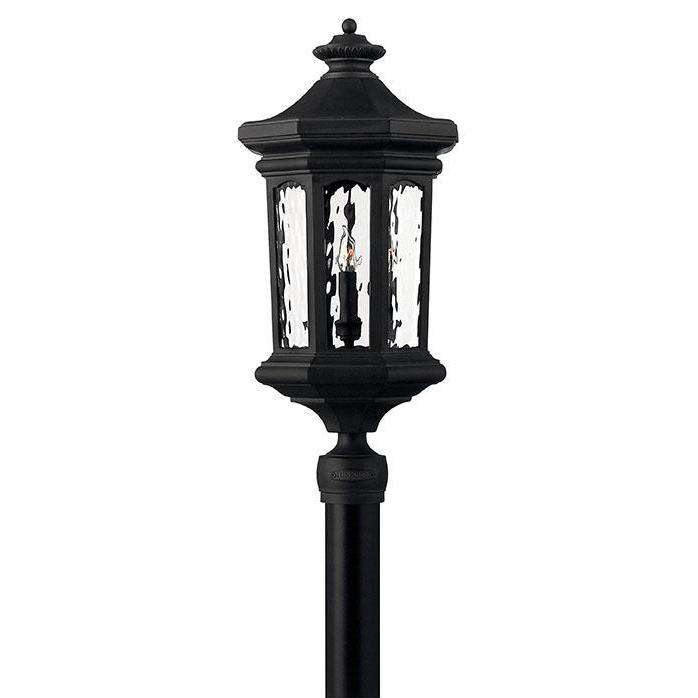 - Raleys regal appearance features a bold Museum Black or Oil Rubbed Bronze finish, flourishing details and clear water glass panels for a dignified style statement.