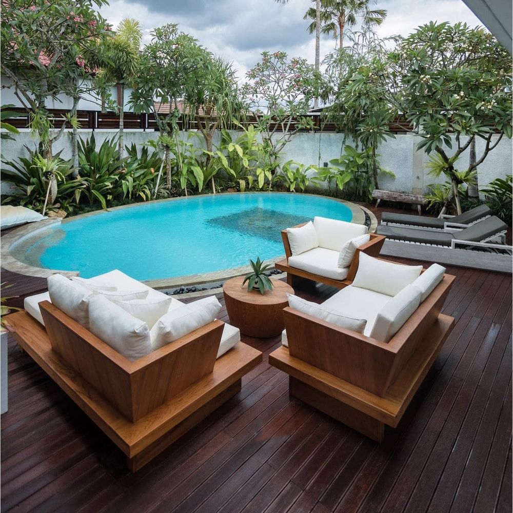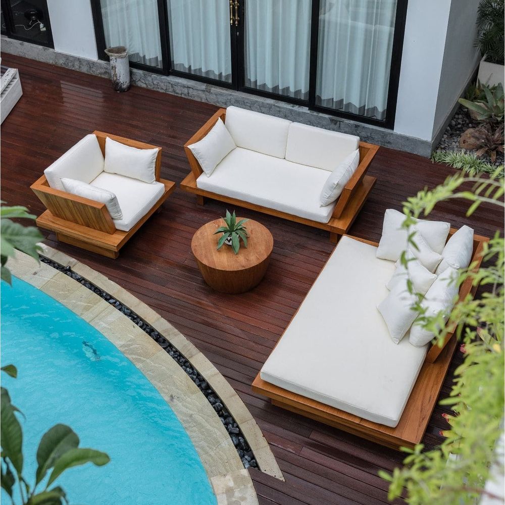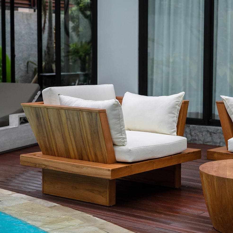 - Materials: Teak Wood, Outdoor Fabric