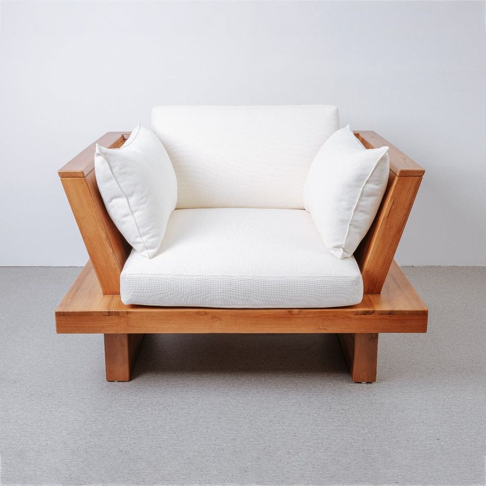 Kick back and relax in style. This platform style outdoor chair will instantly upgrade any living space - inside or out! A teak wood frame provides support for the foam cushioning that's been upholstered in durable outdoor fabric.