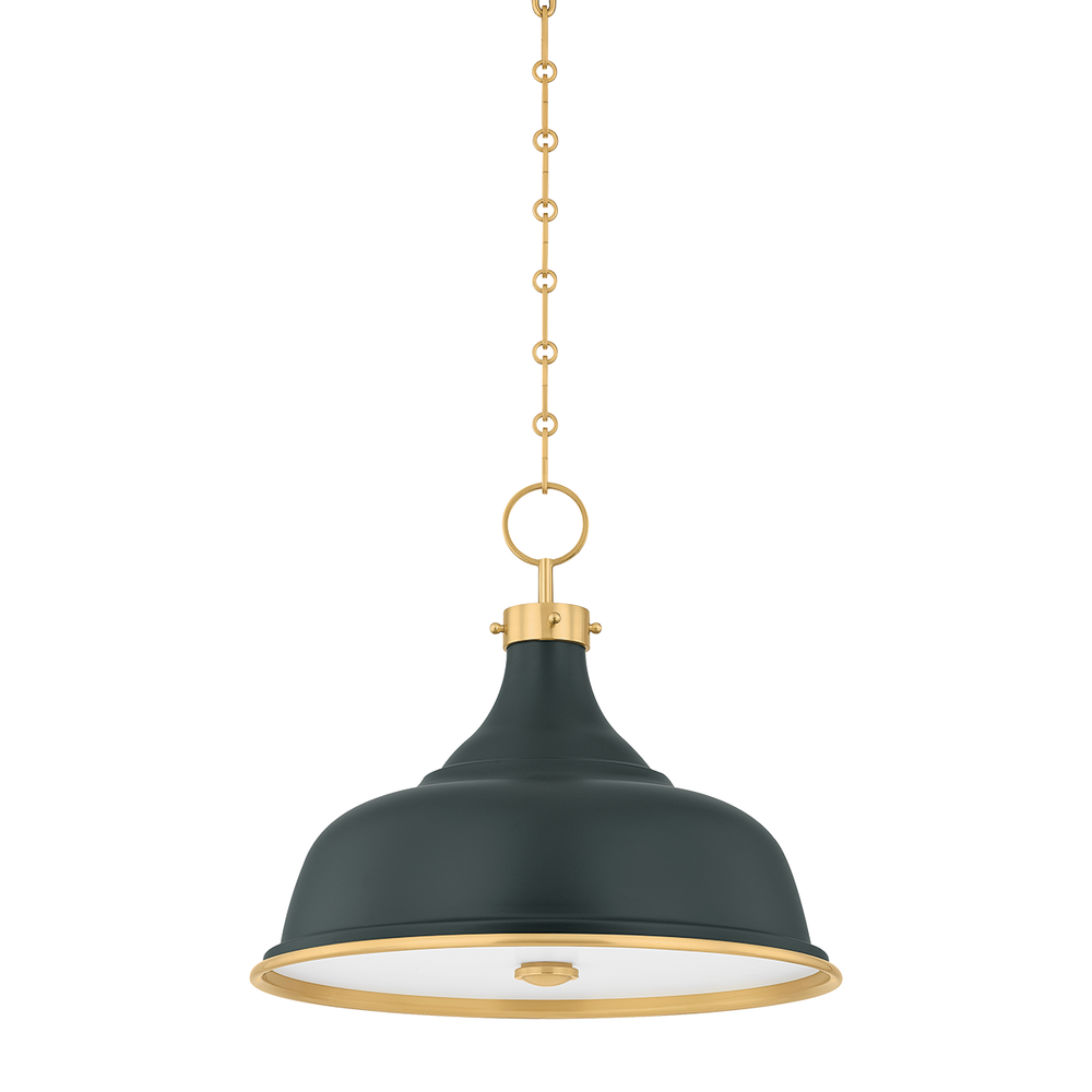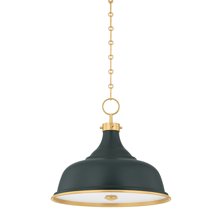 Description: Simple, easy, and approachable, the tried-and-true Painted No.1 pendant light is now available in even more beautiful color and finish combinations. The classic hues have a timeless appeal, each giving the curved shade a different feel. This versatile pendant light comes in a 3-light design with an Aged Brass and Soft Studio Green finish or Polished Nickel and Soft French Blue finish. The 4-light design is also available in these finishes, as well as Aged Brass and Darkest Blue; Polished Nickel and Off-White; and Aged Brass and Off-White.