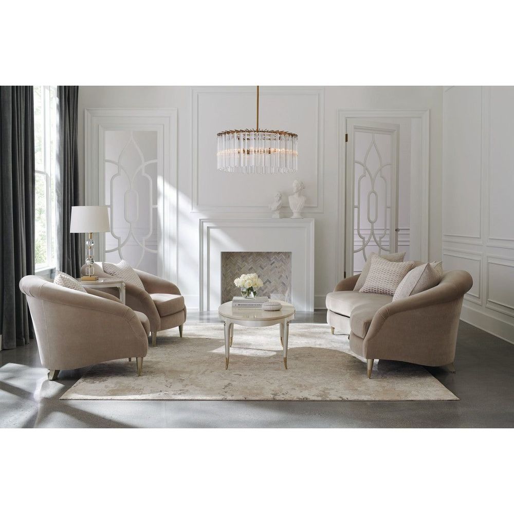 - Leg appliques and metal ferrules in Whisper of Gold.