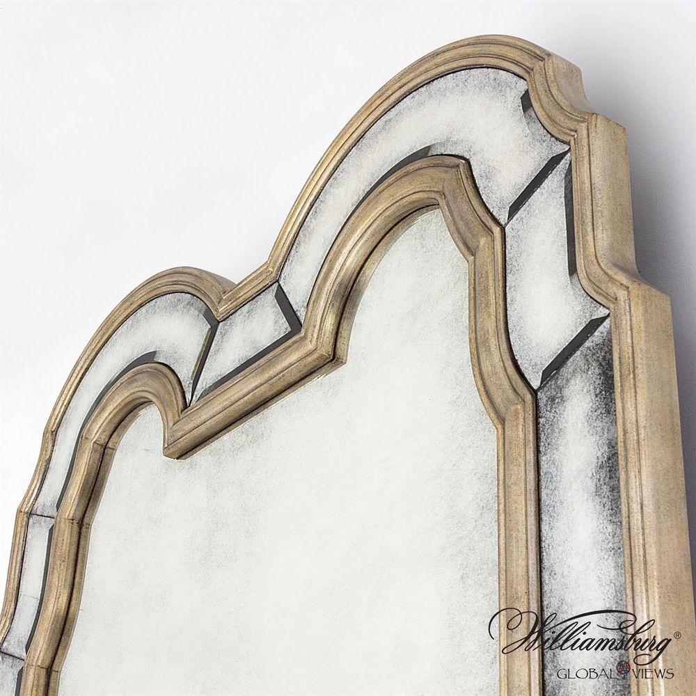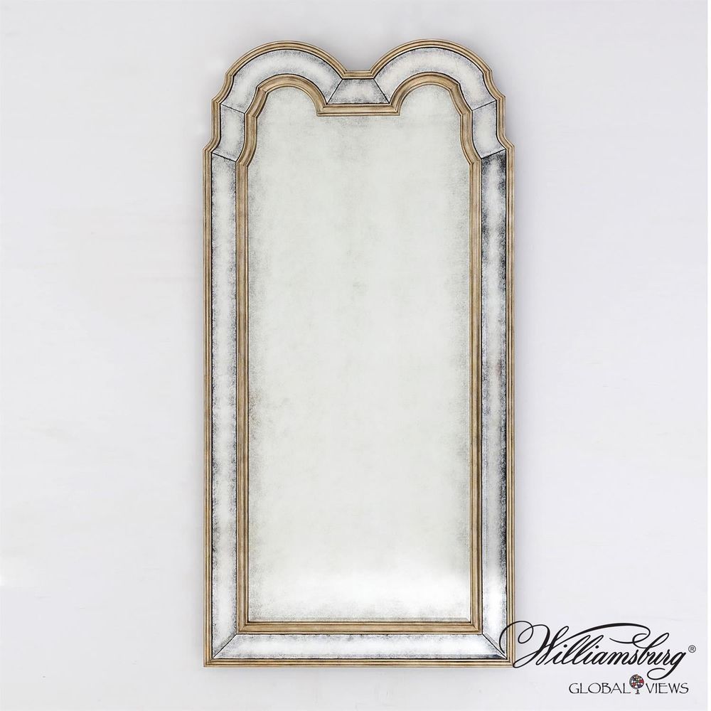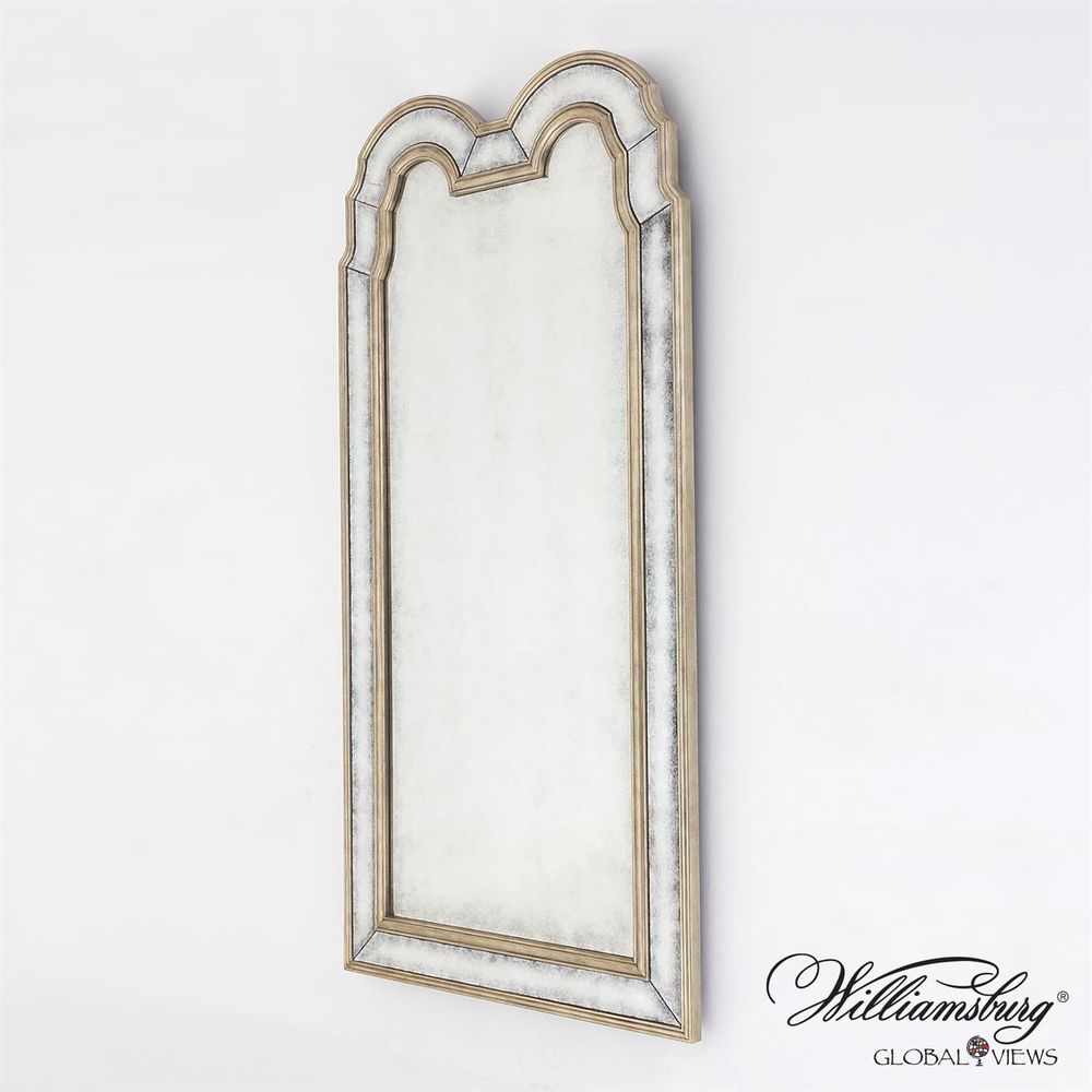 Inspired by a handsome pair of large gilded looking glasses in the central passage in the Governor's Palace in Williamsburg, Virginia, the impressive silvered Palace Passage Mirror brings panache and polish to today's interiors. The original mirrors, dating to about 1740, flank the doorway to the dining room, reflecting light from windows on the landing of the adjacent stairway. Glass and mirrors were extremely costly to produce in the early 18th century-think of the impact of Louis XIV's Hall of Mirrors-so a full-length mirror was a status symbol.