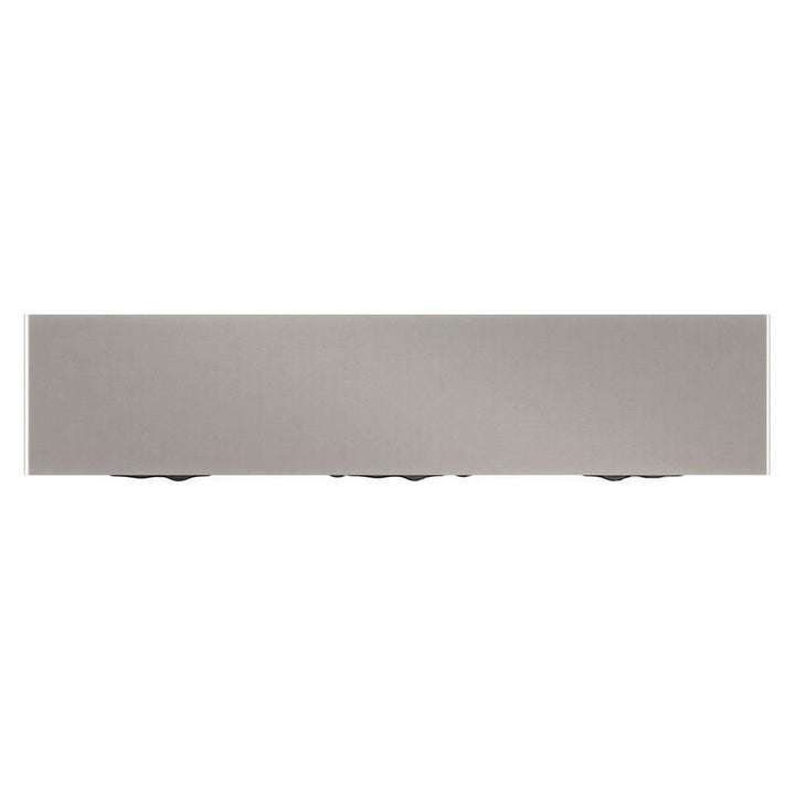 Features: Top frame and ends in Matte Pearl.Four bottom doors with fronts in Snowcap Organic and European softclose hinges.Three top drawers with fronts in Snowcap Organic and soft close undermount guides.Metal legs in Deep Bronze.Wire management exit holes in back.Interior in Matte Pearl.Hardware in Deep Bronze.