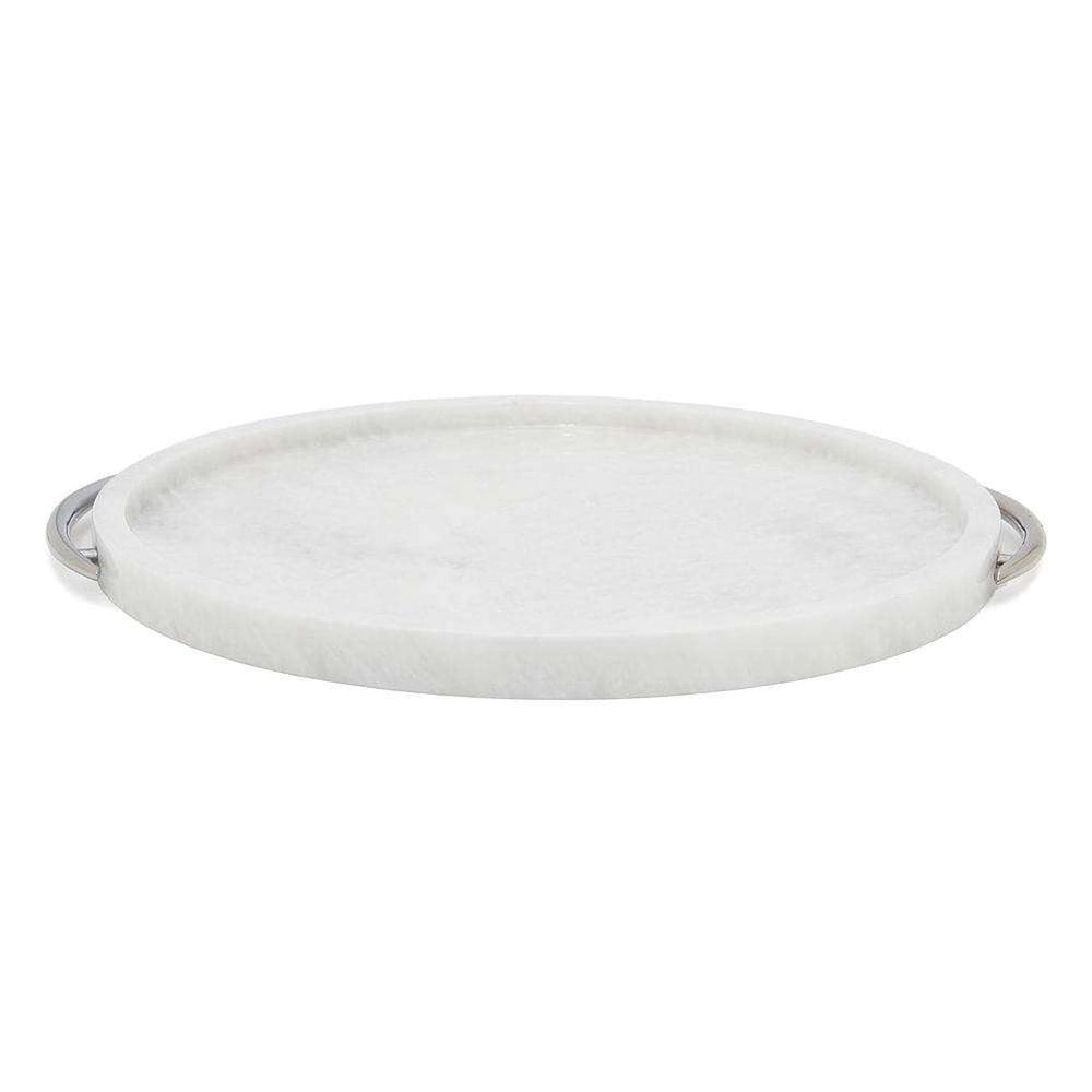 This sleek marble place tray is perfect for keeping tabletops organized or just as a platform for display. The slight lip helps keep things from falling off, and two shiny metal handles make it easier to move around. Available in cloud gray, jet black, or pearl white.