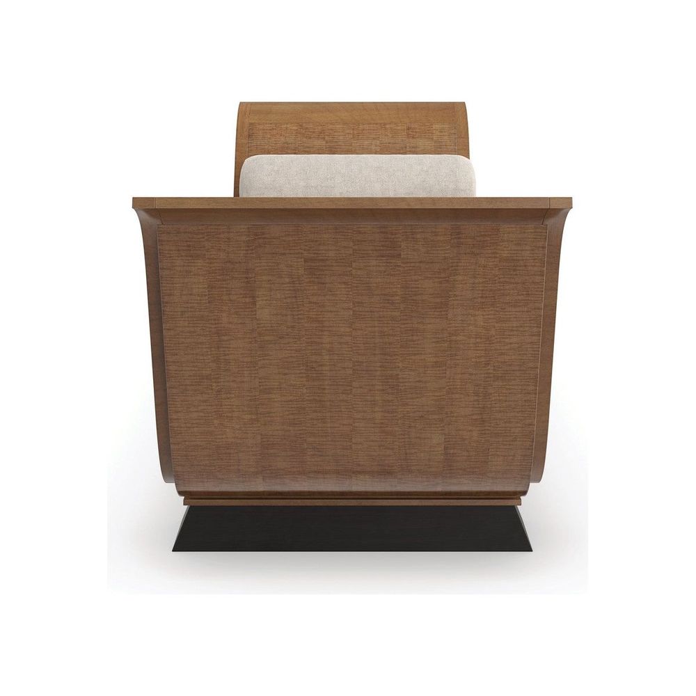 With a nod to Greek and Roman antiquity, this chaise introduces lounge-like comfort and a classic undertone. Its daybed form recalls pieces used throughout history to lounge comfortably yet respectably in the presence of guests. Dressed in a light-toned linen with matching bolster pillows, warmly contrasted by an arcing frame in Toasted Sycamore and plinth legs in a rich Charred Bark finish. Style in a seating area designed for conversations or use it to separate two designated spaces in a room.