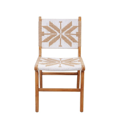 This charming side chair will shine in any dining or kitchen space. The simple frame design lets the patterned seat and back be the star of the show. Crafted from woven linen and jute rope the seat and back have a traditional starburst pattern.
