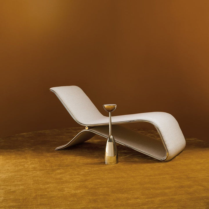 Inspired by the continuous form and simple elegance of a paperclip, this sculptural seat melds clean lines and angles with a minimalist material mix. Relaxed yet refined with a lounge-like aesthetic, its subtly curved back and seat are warmly defined by a tubular metal frame finished in a Whisper of Gold. Style in pairs to make an unforgettable statement.